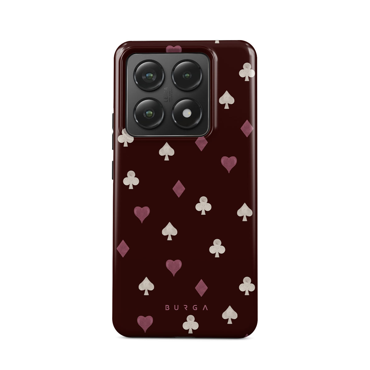 Nothing is as it appears. Hearts, clubs, diamonds, and spades—stacked in your favor or playing against you? This Xiaomi 14T Pro phone case design features a rich burgundy background and minimalist suits that make for a game where the rules are constantly shifting.