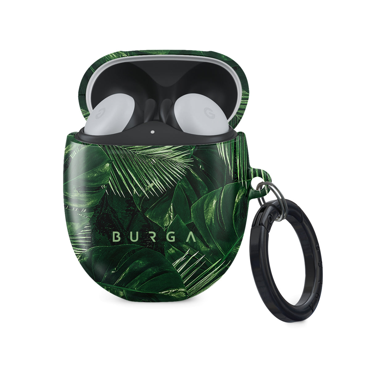 Our Tropical Garden Google Pixel Buds 2 case cover showcases mesmerizing greens. Palm fronds and Monstera leaves' unique patterns will add a tropical touch to your wardrobe while offering heavy-duty protection to your Google Pixel Buds 2 case. Our case fits perfectly snug around Google Pixel Buds 2 . “Like a glove!” one might say. And it won’t disrupt the wireless charging capabilities of the newer model. There’s even an LED light indicator to prove it (don’t worry, wired charging still works, too). When fitted, the BURGA case will protect the delicate Google Pixel Buds 2 case beneath it from scratches, bumps, and drops while remaining scratch-free itself. Our signature design pattern prints are High Quality, and will never peel or fade away- thanks to our unique printing technology. And finally, a handy carabiner is there to make your life easier and more convenient: just snap it around your keys or belt loop and tackle the day head-on. Your music is right there by your side when you need it.