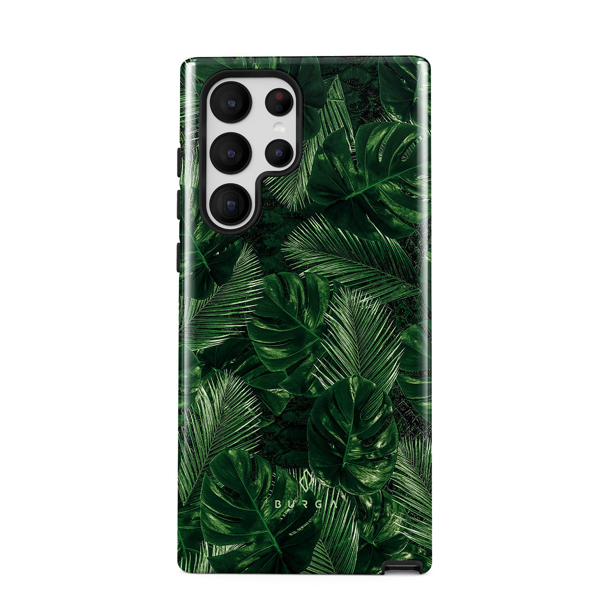 Enter the World of Jungles with our Tropical Garden Samsung Galaxy S22 Ultra phone case cover showcasing mesmerizing greens. Palm fronds and Monstera leaves' unique patterns will add a tropical touch to your wardrobe while offering heavy-duty protection to your phone.