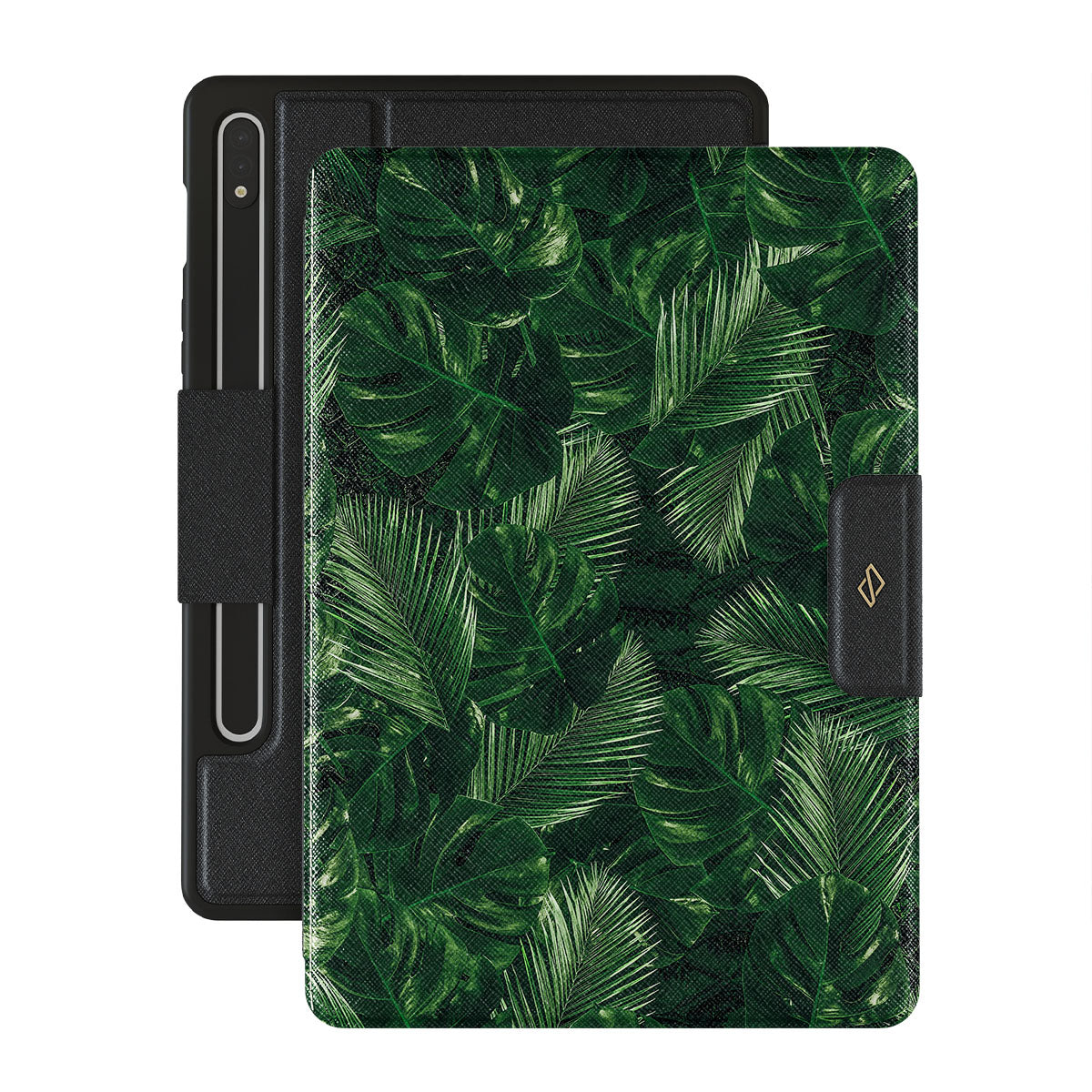 Enter the World of Jungles with our Tropical Garden Samsung Galaxy Tab S9 FE folio case cover showcasing mesmerizing greens. Palm fronds and Monstera leaves' unique patterns will add a tropical touch to your wardrobe while offering heavy-duty protection to your Galaxy Tab.