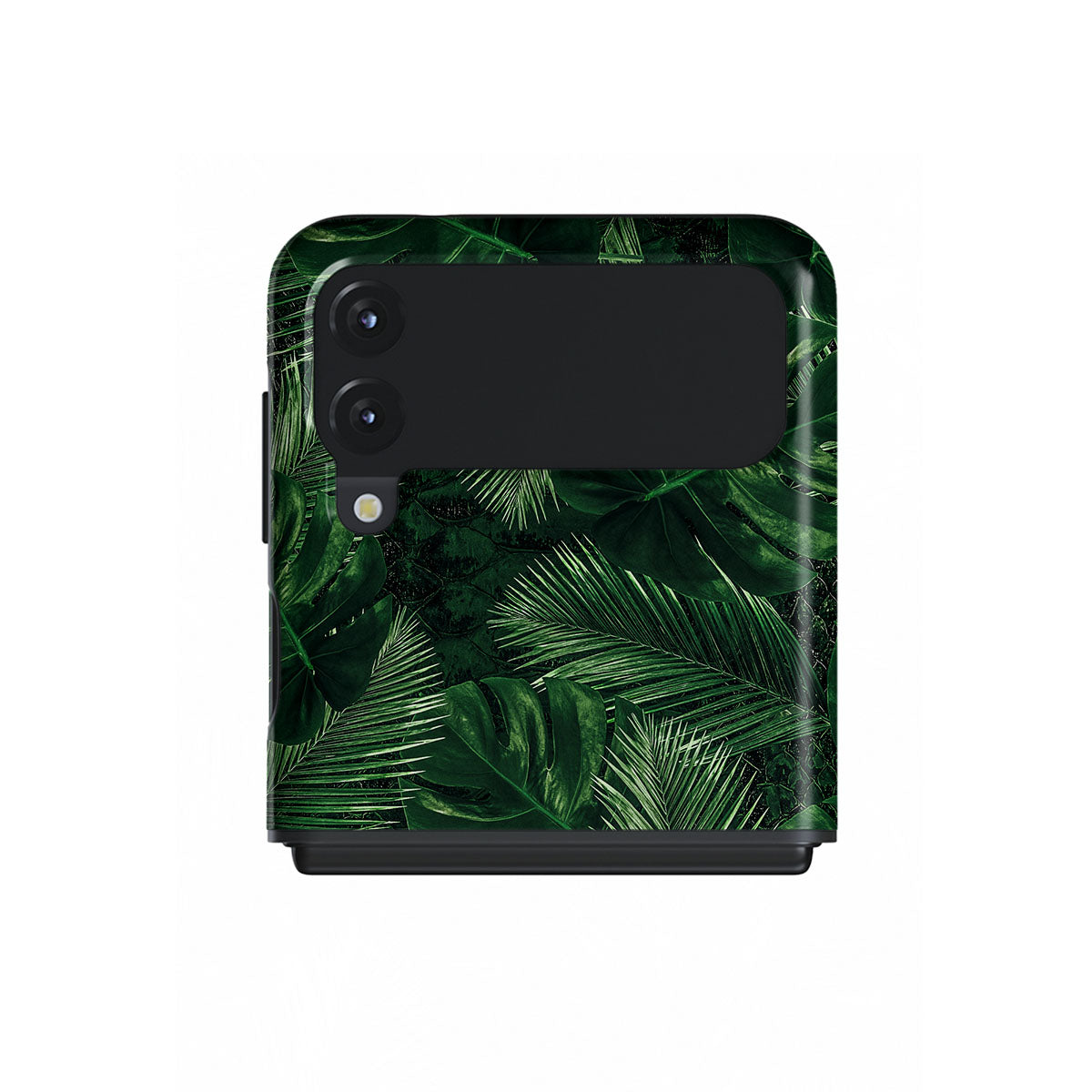 Enter the World of Jungles with our Tropical Garden Samsung Galaxy Z Flip 3 phone case cover showcasing mesmerizing greens. Palm fronds and Monstera leaves' unique patterns will add a tropical touch to your wardrobe while offering heavy-duty protection to your phone.