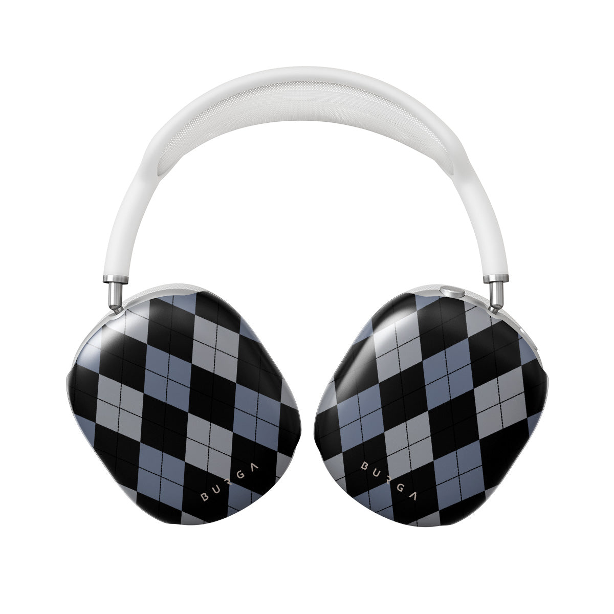 Discover our Trouble Apple AirPods Max case cover design—a classic argyle pattern featuring stark black diamonds that seamlessly blend with two distinct shades of blue. Made for those who respect the classics but aren't afraid to disrupt the norm.