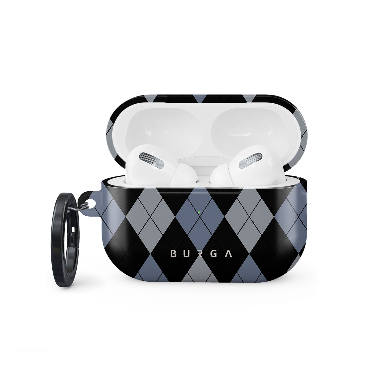 Discover our Trouble Apple Airpods Pro 2 case cover design—a classic argyle pattern featuring stark black diamonds that seamlessly blend with two distinct shades of blue. Made for those who respect the classics but aren't afraid to disrupt the norm.