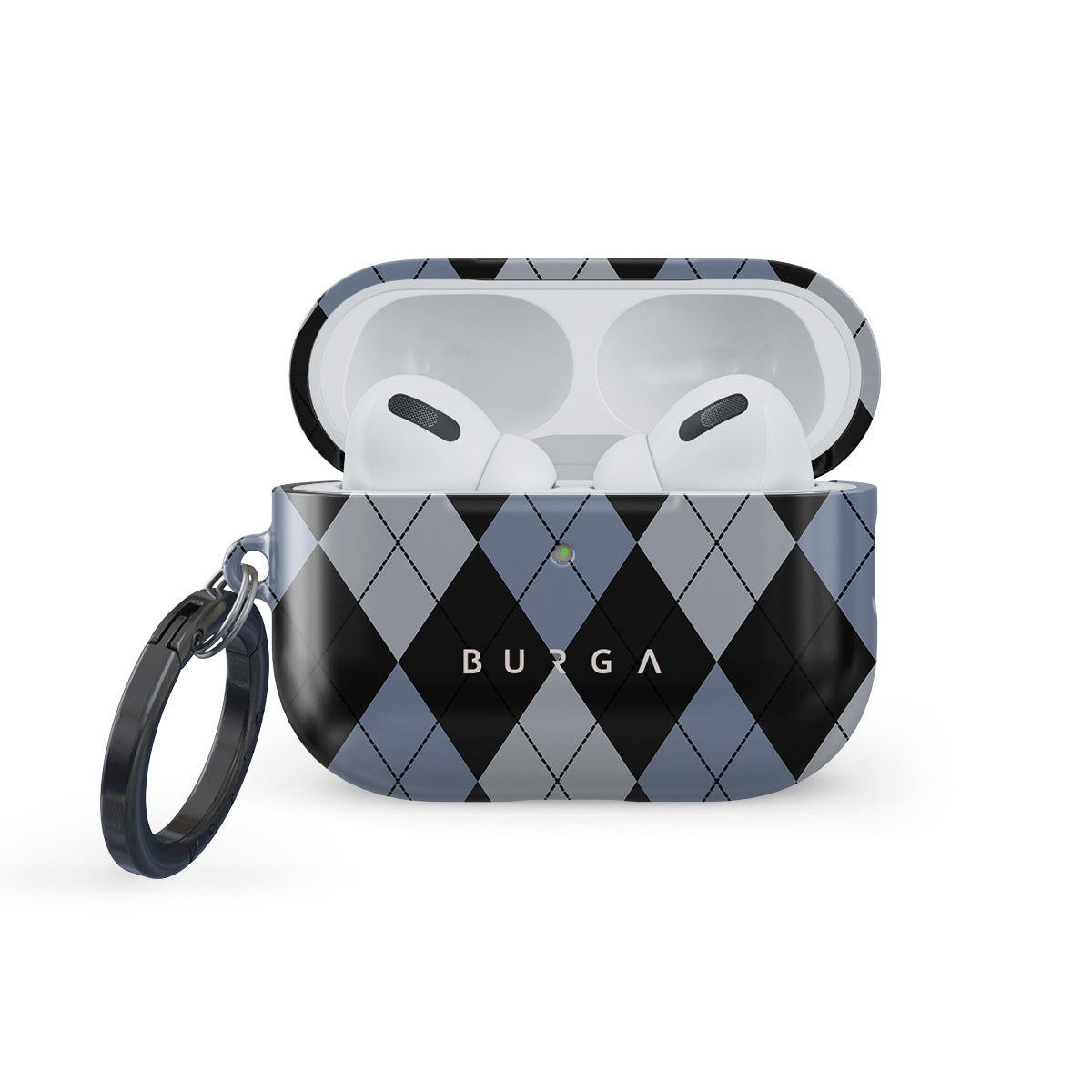 Discover our Trouble Apple AirPods Pro 3 case cover design—a classic argyle pattern featuring stark black diamonds that seamlessly blend with two distinct shades of blue. Made for those who respect the classics but aren't afraid to disrupt the norm.