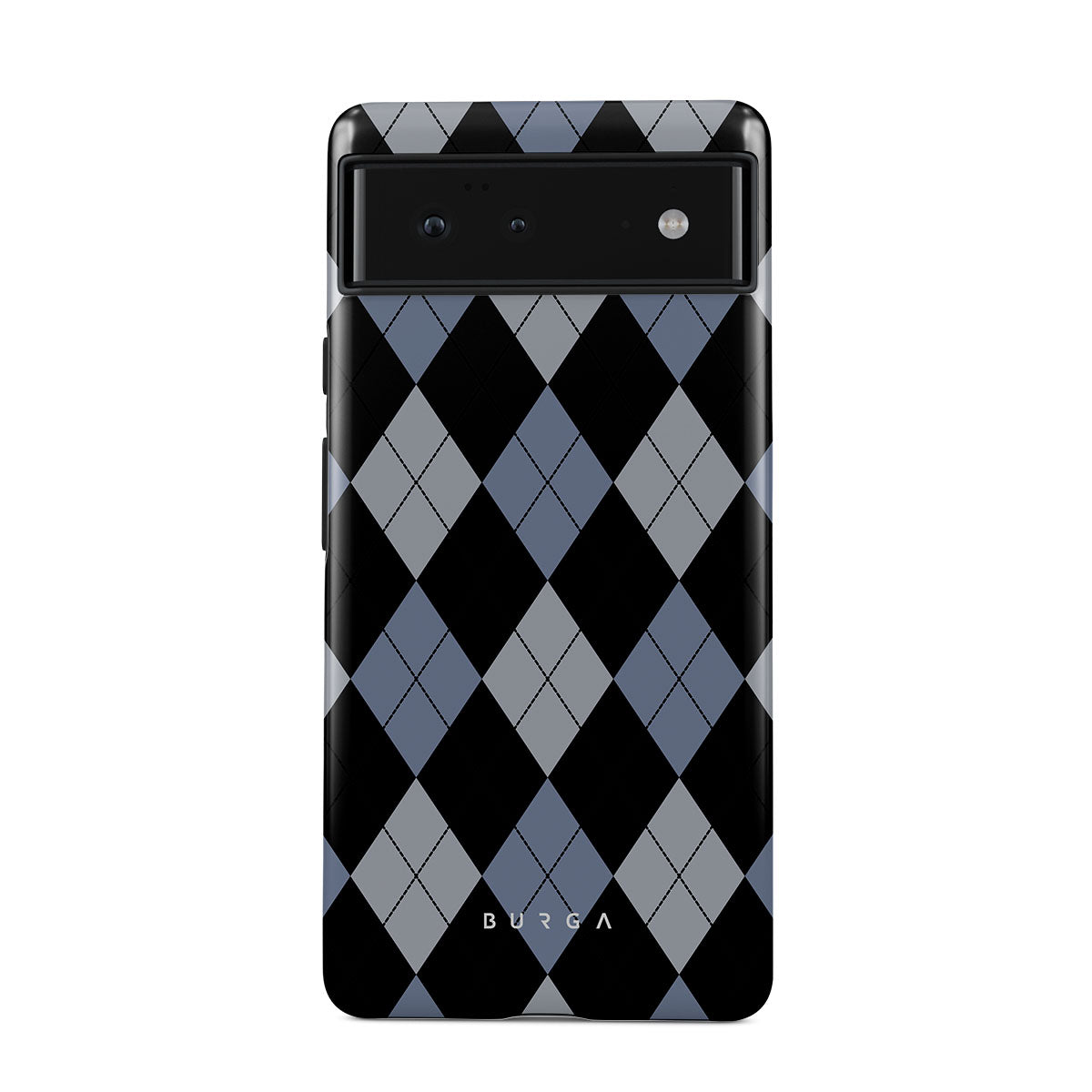 Discover our Trouble Google Pixel 6a phone case design—a classic argyle pattern featuring stark black diamonds that seamlessly blend with two distinct shades of blue. Made for those who respect the classics but aren't afraid to disrupt the norm.