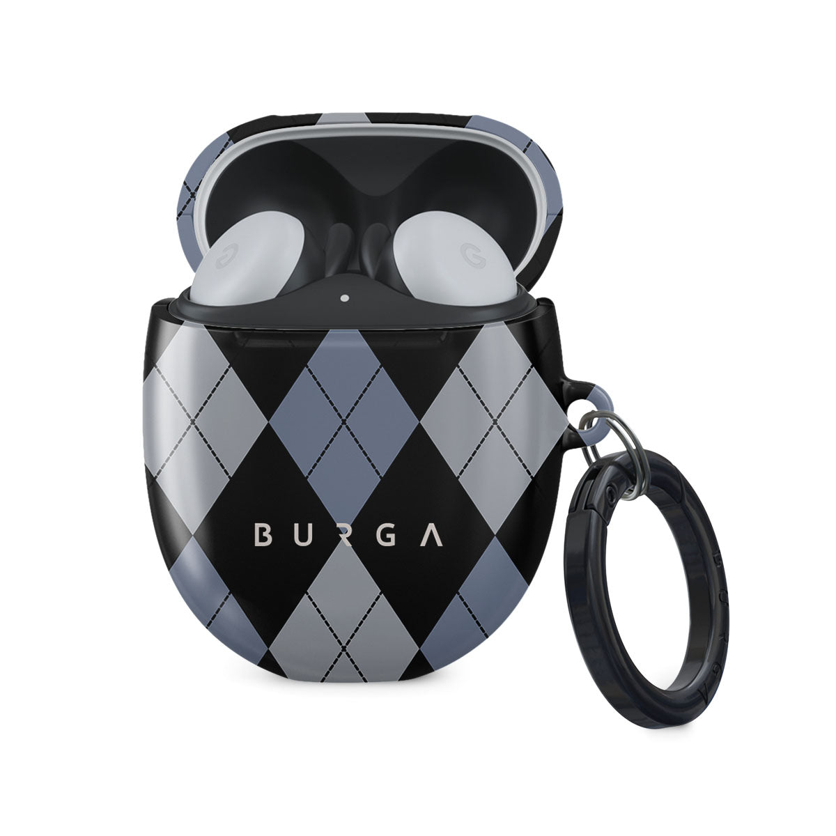 Discover our Trouble Google Pixel Buds 2 case cover design—a classic argyle pattern featuring stark black diamonds that seamlessly blend with two distinct shades of blue. Made for those who respect the classics but aren't afraid to disrupt the norm.