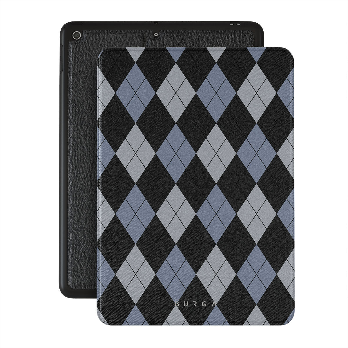 Discover our Trouble iPad 10.2 (9th/8th/7th Gen) folio case design—a classic argyle pattern featuring stark black diamonds that seamlessly blend with two distinct shades of blue. Made for those who respect the classics but aren't afraid to disrupt the norm.