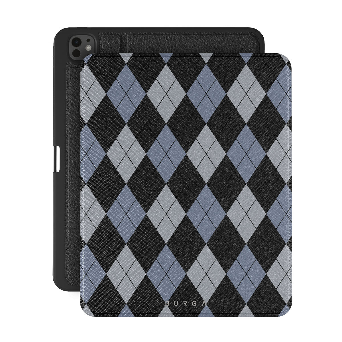 Discover our Trouble iPad Pro 13 (8th/7th Gen) folio case design—a classic argyle pattern featuring stark black diamonds that seamlessly blend with two distinct shades of blue. Made for those who respect the classics but aren't afraid to disrupt the norm.