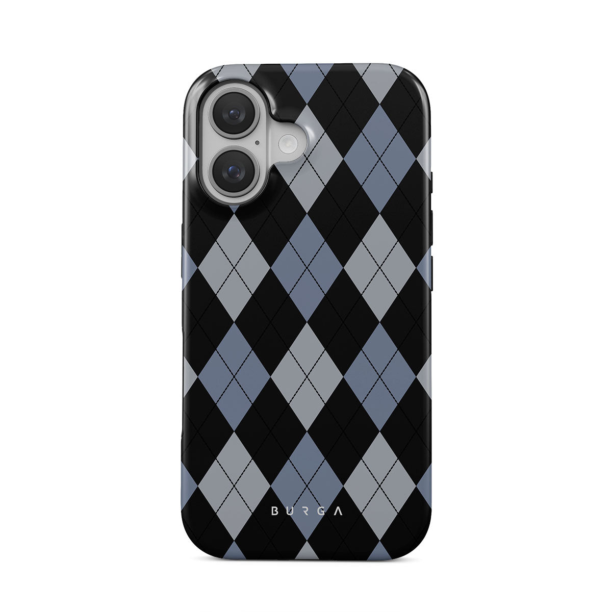 Discover our Trouble iPhone 16 Plus phone case design—a classic argyle pattern featuring stark black diamonds that seamlessly blend with two distinct shades of blue. Made for those who respect the classics but aren't afraid to disrupt the norm.