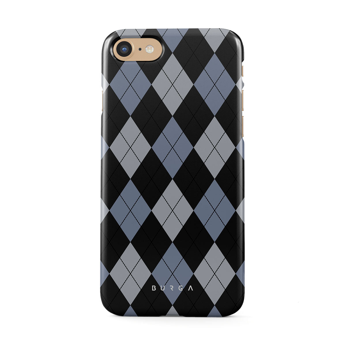 Discover our Trouble iPhone 7 / iPhone 8 phone case design—a classic argyle pattern featuring stark black diamonds that seamlessly blend with two distinct shades of blue. Made for those who respect the classics but aren't afraid to disrupt the norm.