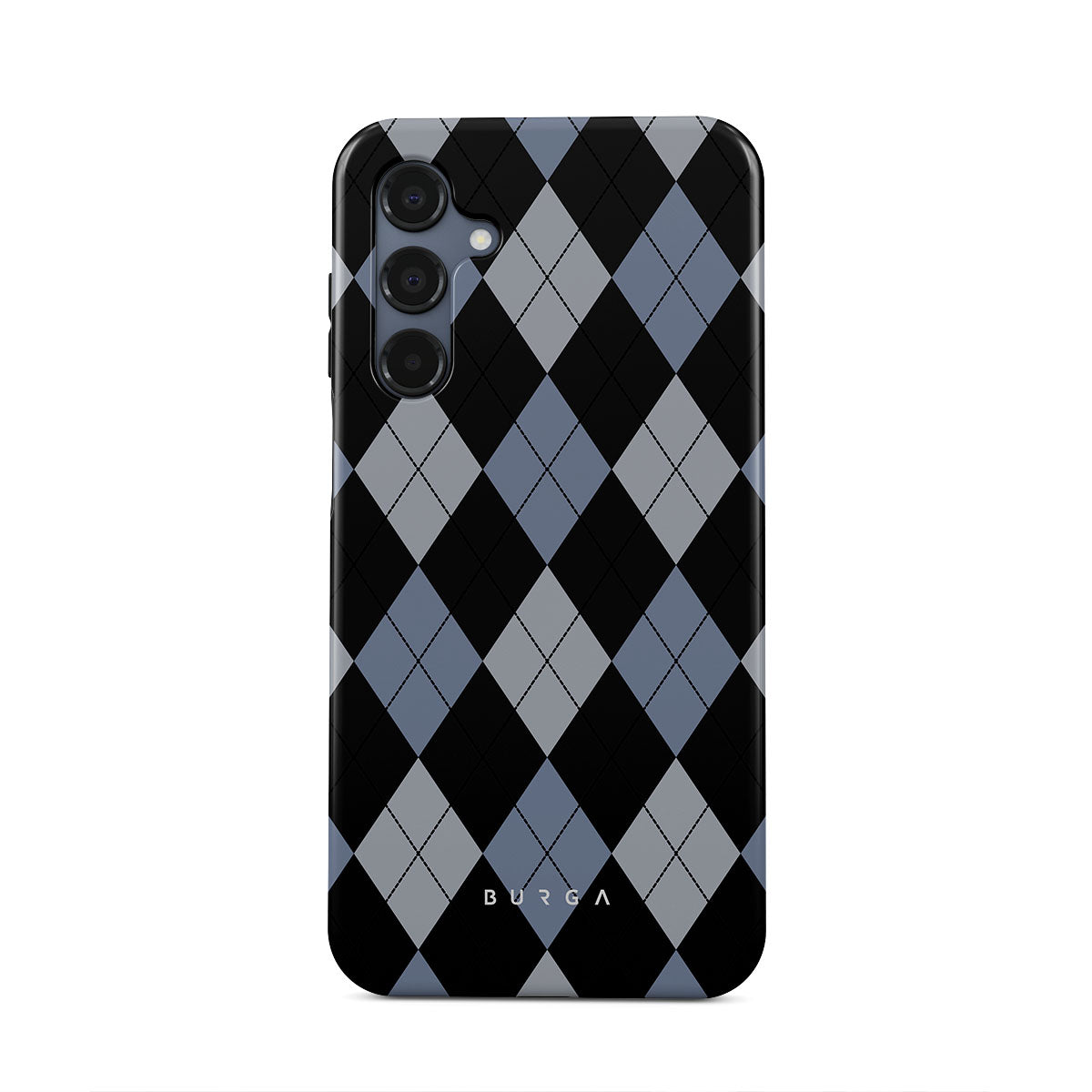 Discover our Trouble Samsung Galaxy A16 phone case design—a classic argyle pattern featuring stark black diamonds that seamlessly blend with two distinct shades of blue. Made for those who respect the classics but aren't afraid to disrupt the norm.