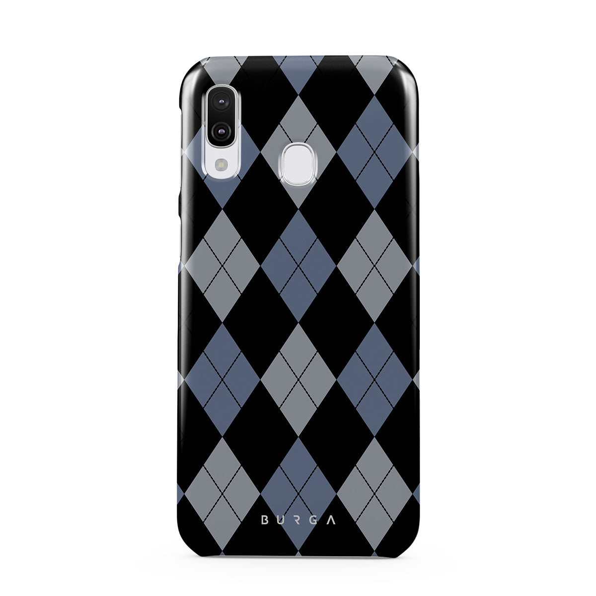Discover our Trouble Samsung Galaxy A40 phone case design—a classic argyle pattern featuring stark black diamonds that seamlessly blend with two distinct shades of blue. Made for those who respect the classics but aren't afraid to disrupt the norm.