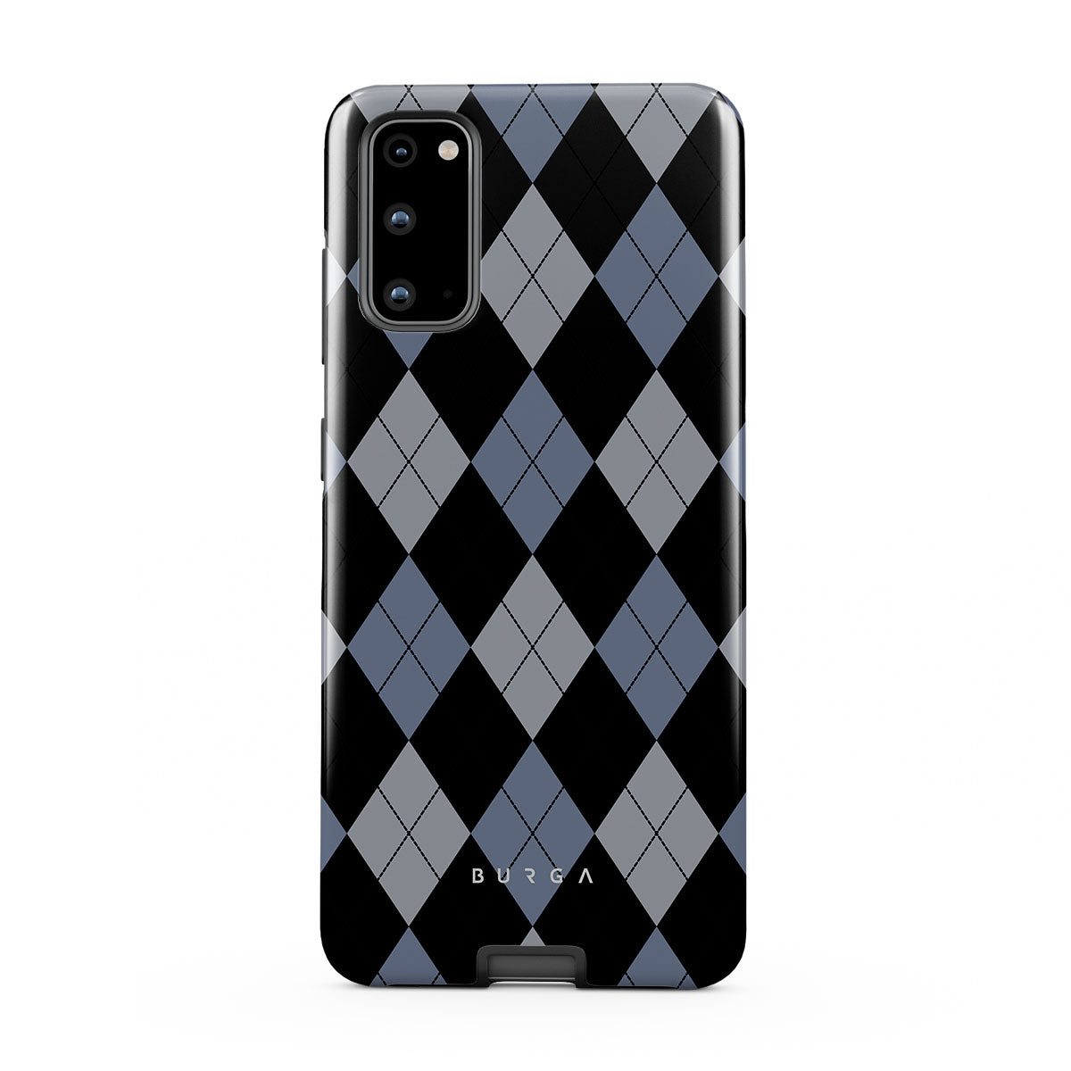 Discover our Trouble Samsung Galaxy S20 FE 4G / 5G phone case design—a classic argyle pattern featuring stark black diamonds that seamlessly blend with two distinct shades of blue. Made for those who respect the classics but aren't afraid to disrupt the norm.