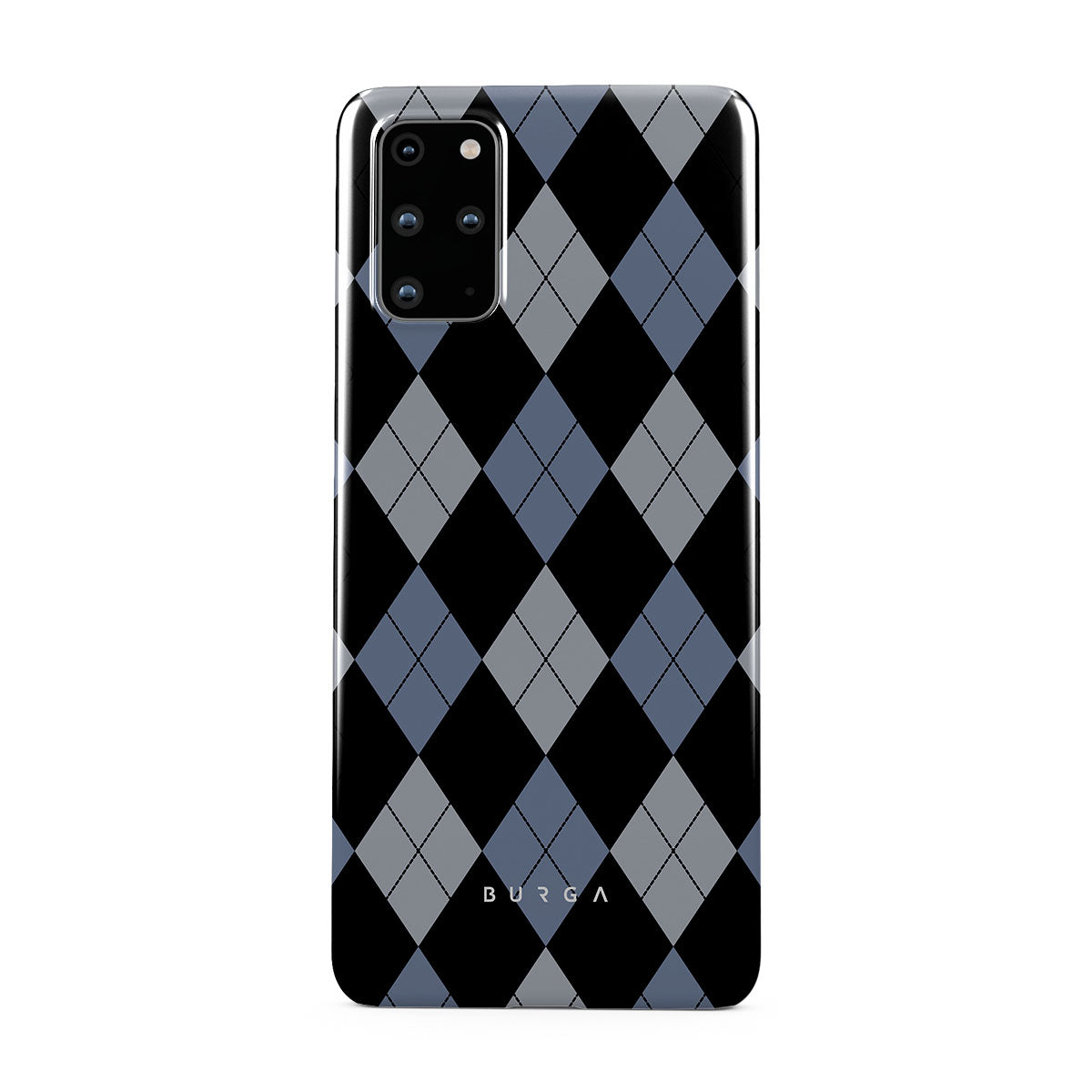 Discover our Trouble Samsung Galaxy S20 Plus 4G / 5G phone case design—a classic argyle pattern featuring stark black diamonds that seamlessly blend with two distinct shades of blue. Made for those who respect the classics but aren't afraid to disrupt the norm.