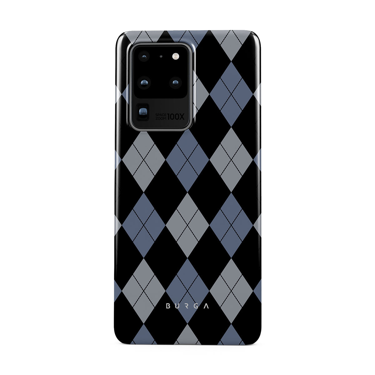 Discover our Trouble Samsung Galaxy S20 Ultra 4G / 5G phone case design—a classic argyle pattern featuring stark black diamonds that seamlessly blend with two distinct shades of blue. Made for those who respect the classics but aren't afraid to disrupt the norm.