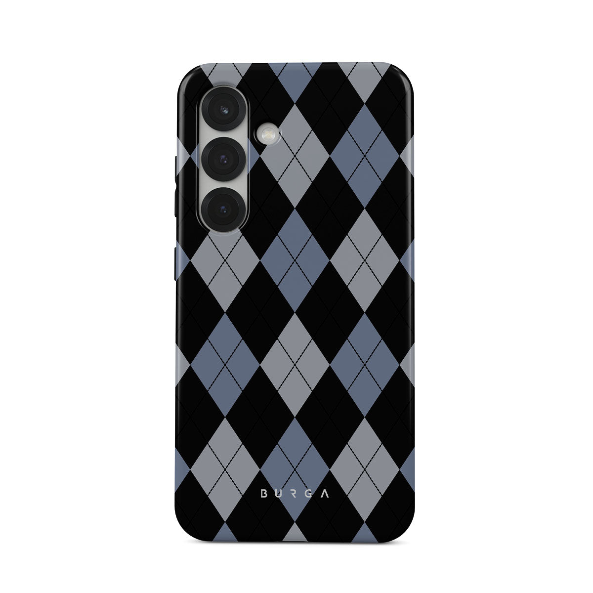 Discover our Trouble Samsung Galaxy S25 Plus phone case design—a classic argyle pattern featuring stark black diamonds that seamlessly blend with two distinct shades of blue. Made for those who respect the classics but aren't afraid to disrupt the norm.