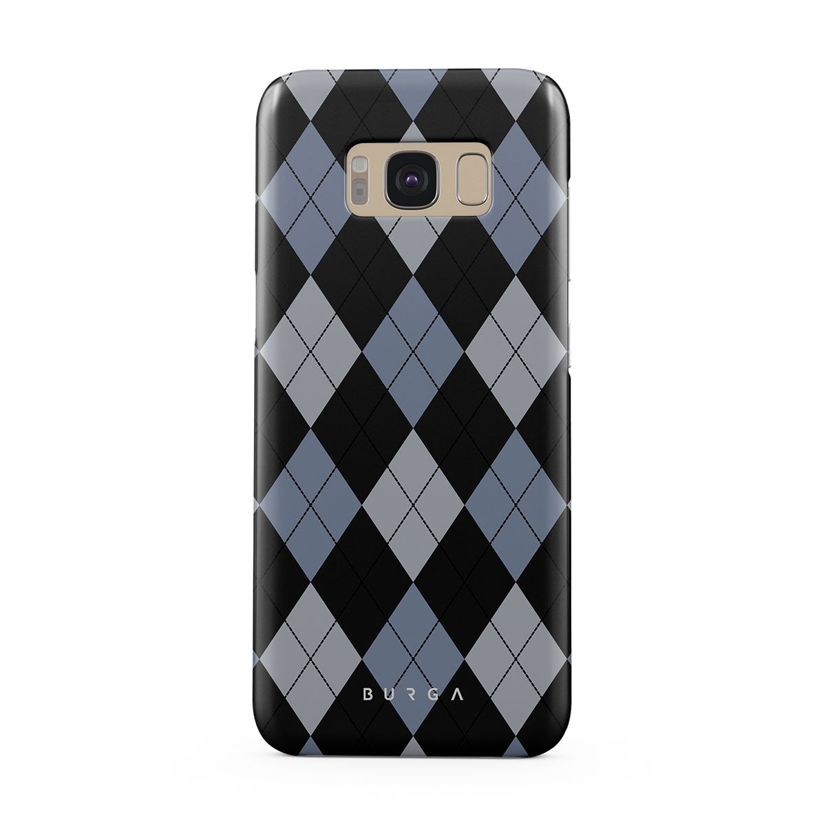 Discover our Trouble Samsung Galaxy S8 phone case design—a classic argyle pattern featuring stark black diamonds that seamlessly blend with two distinct shades of blue. Made for those who respect the classics but aren't afraid to disrupt the norm.