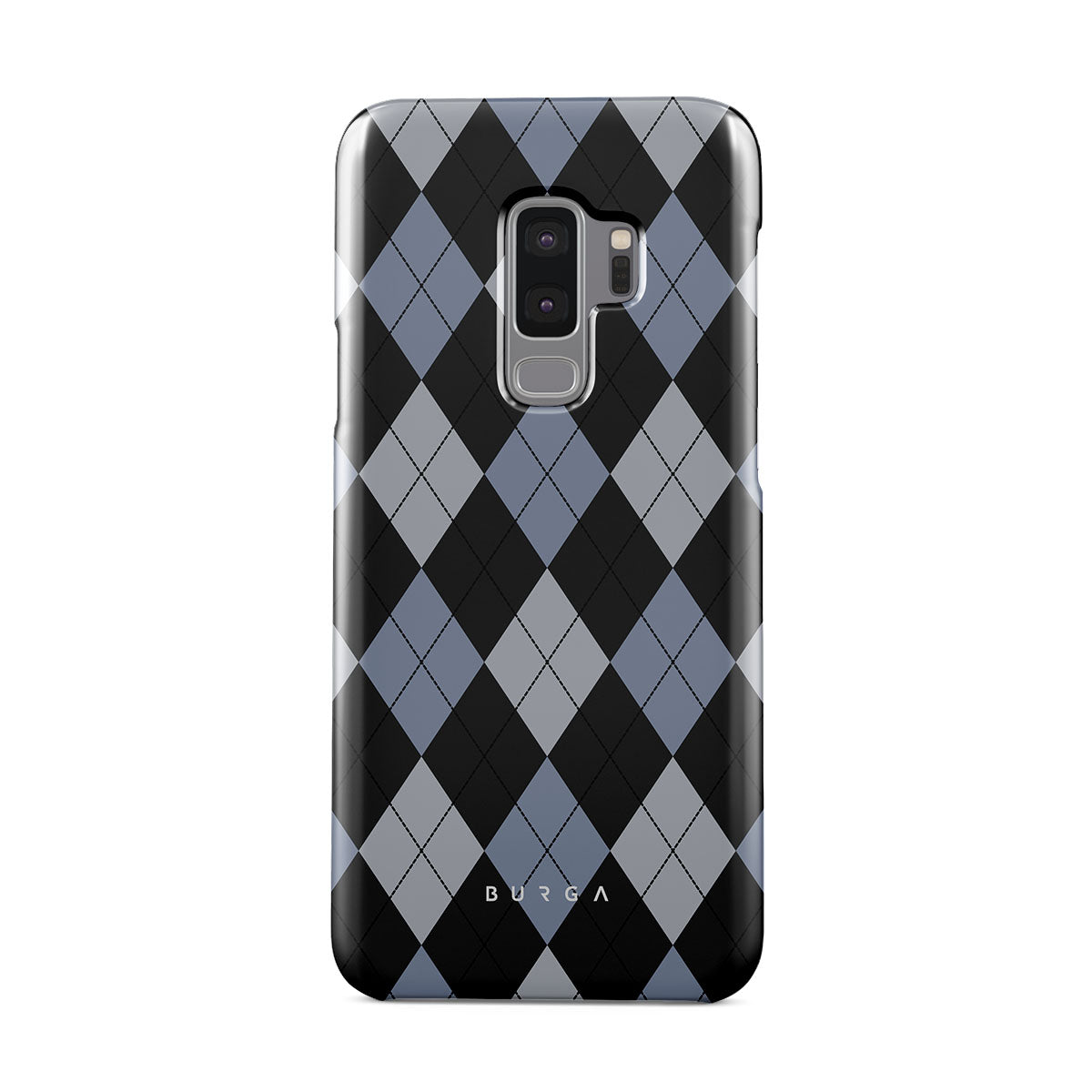 Discover our Trouble Samsung Galaxy S9 Plus phone case design—a classic argyle pattern featuring stark black diamonds that seamlessly blend with two distinct shades of blue. Made for those who respect the classics but aren't afraid to disrupt the norm.
