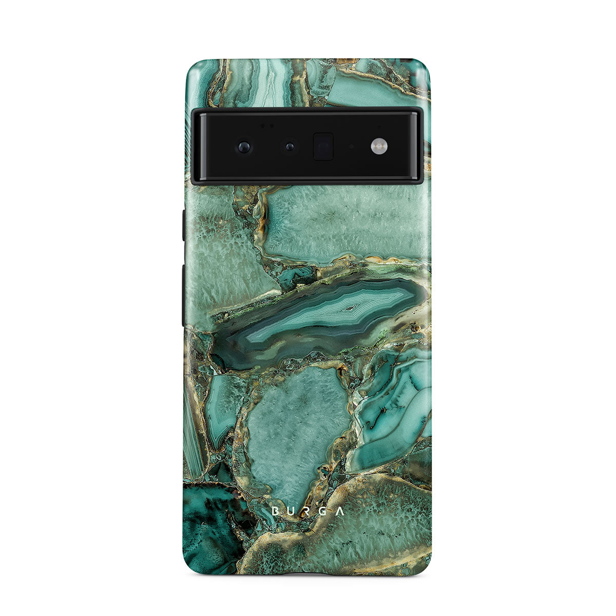 Marble meets geode look in our durable Ubud Jungle Google Pixel 6 Pro phone case. You can rest sure that our stunning turquoise phone case will protect your device from any unexpected falls while adding a dreamy touch to your style.
