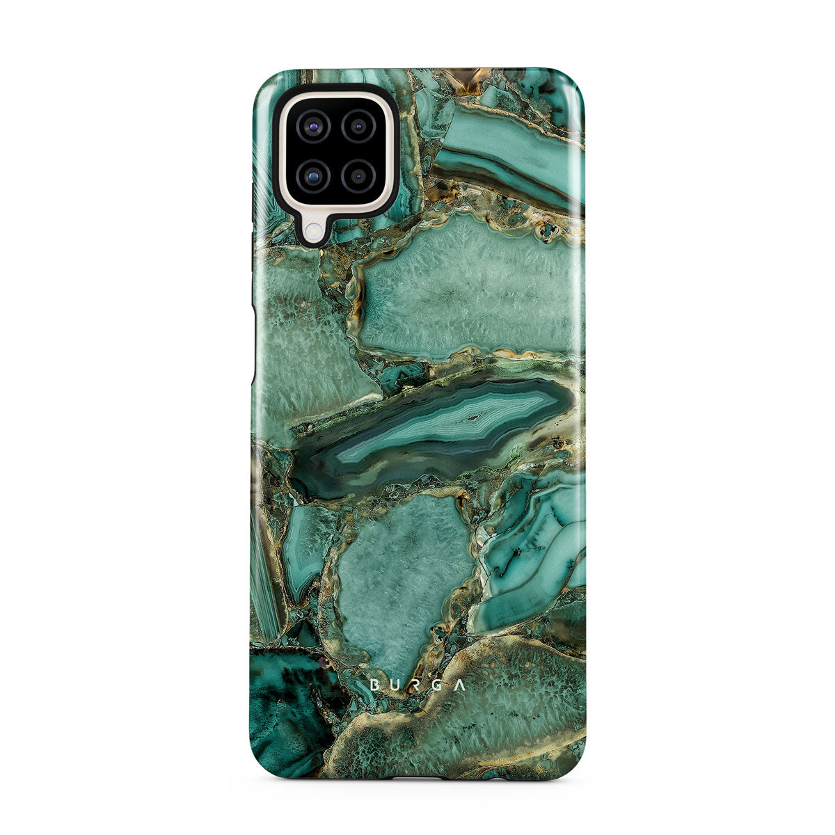 Marble meets geode look in our durable Ubud Jungle Samsung Galaxy A12 4G phone case. You can rest sure that our stunning turquoise phone case will protect your device from any unexpected falls while adding a dreamy touch to your style.