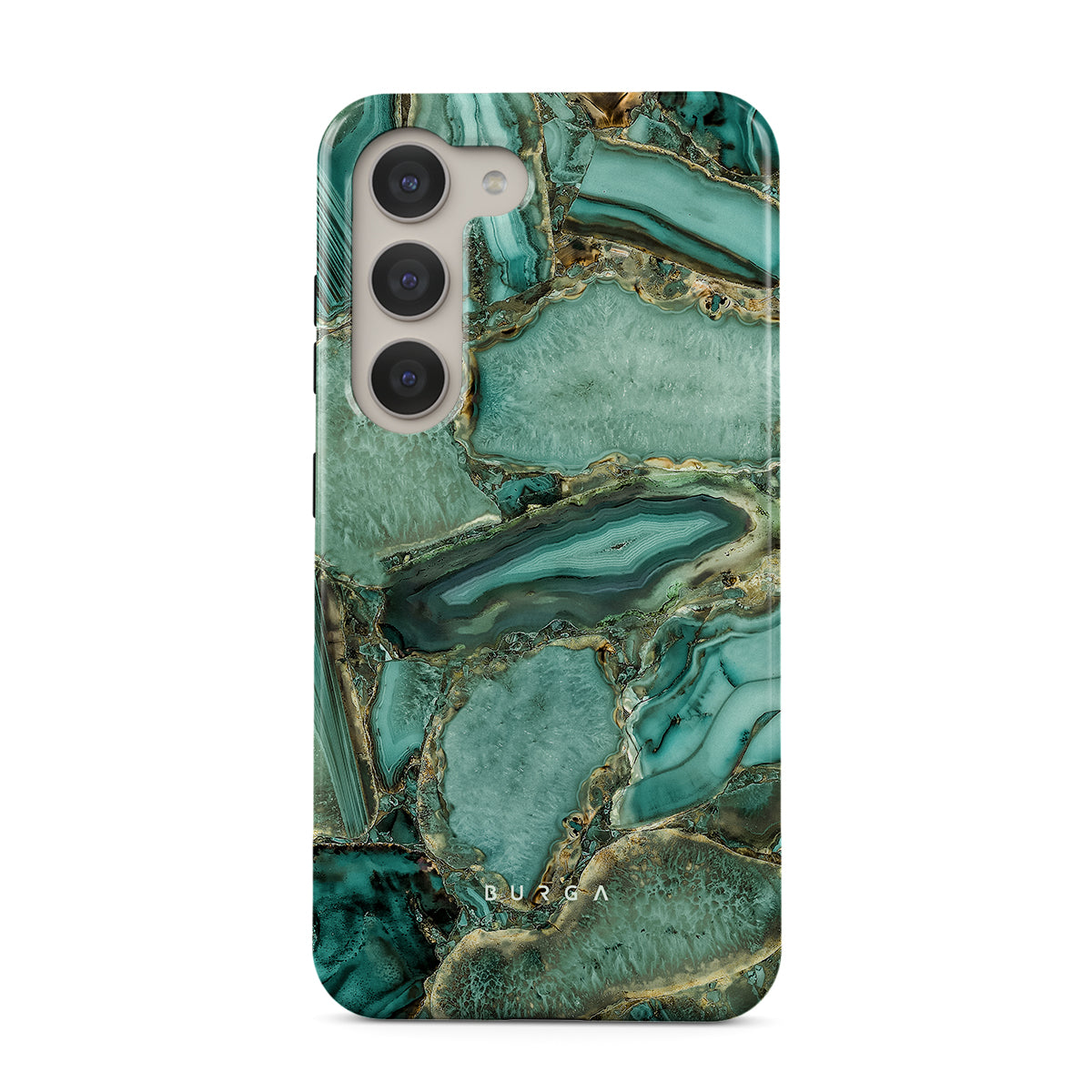 Marble meets geode look in our durable Ubud Jungle Samsung Galaxy S23 phone case. You can rest sure that our stunning turquoise phone case will protect your device from any unexpected falls while adding a dreamy touch to your style.