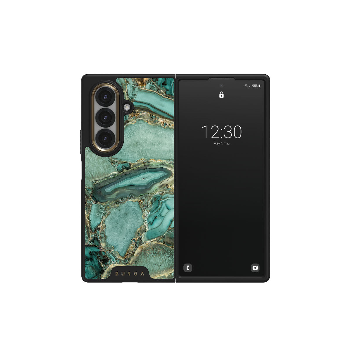 Marble meets geode look in our durable Ubud Jungle Samsung Galaxy Z Fold 7 phone case. You can rest sure that our stunning turquoise phone case will protect your device from any unexpected falls while adding a dreamy touch to your style.