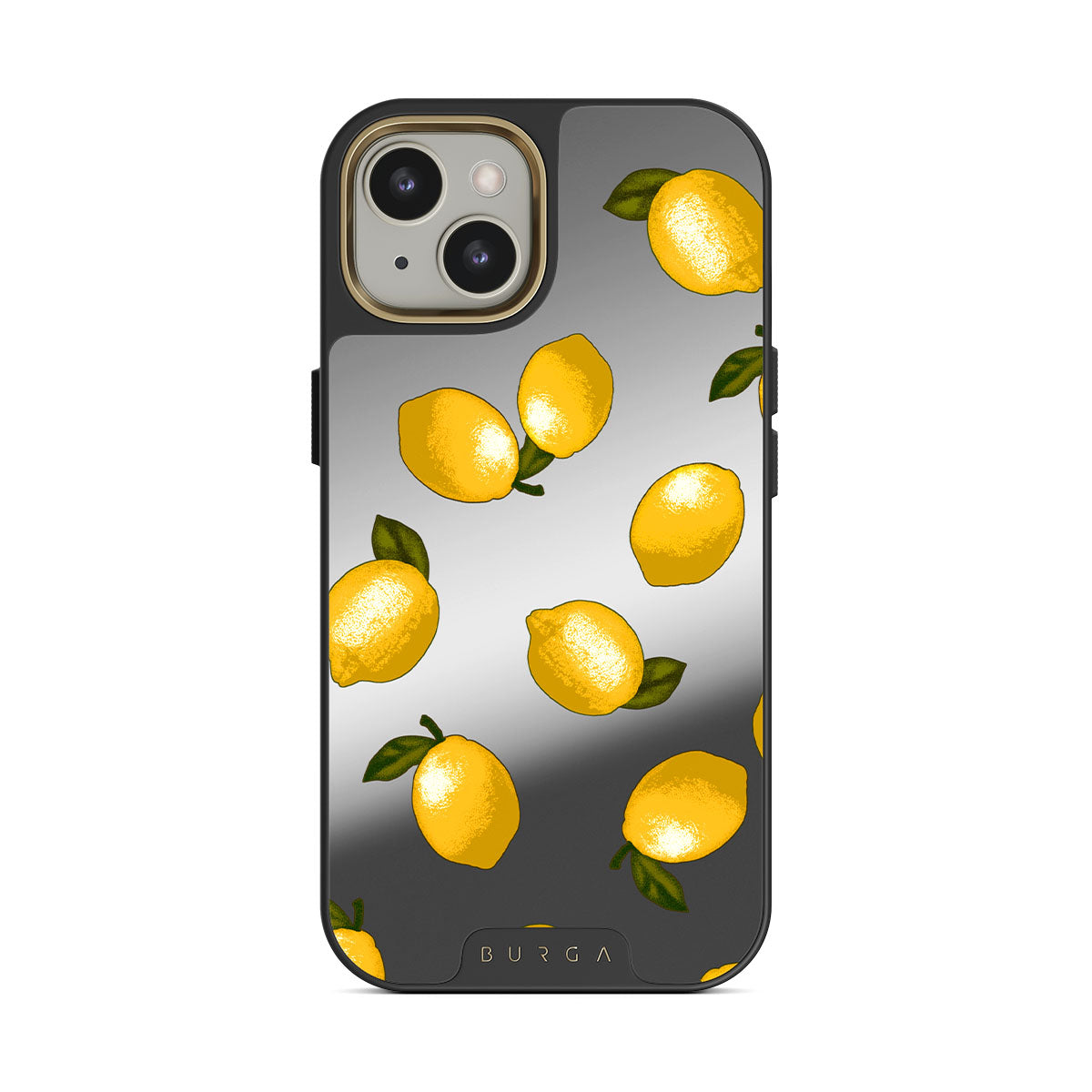This design features: lemons, citrus, yellow fruit, mirror