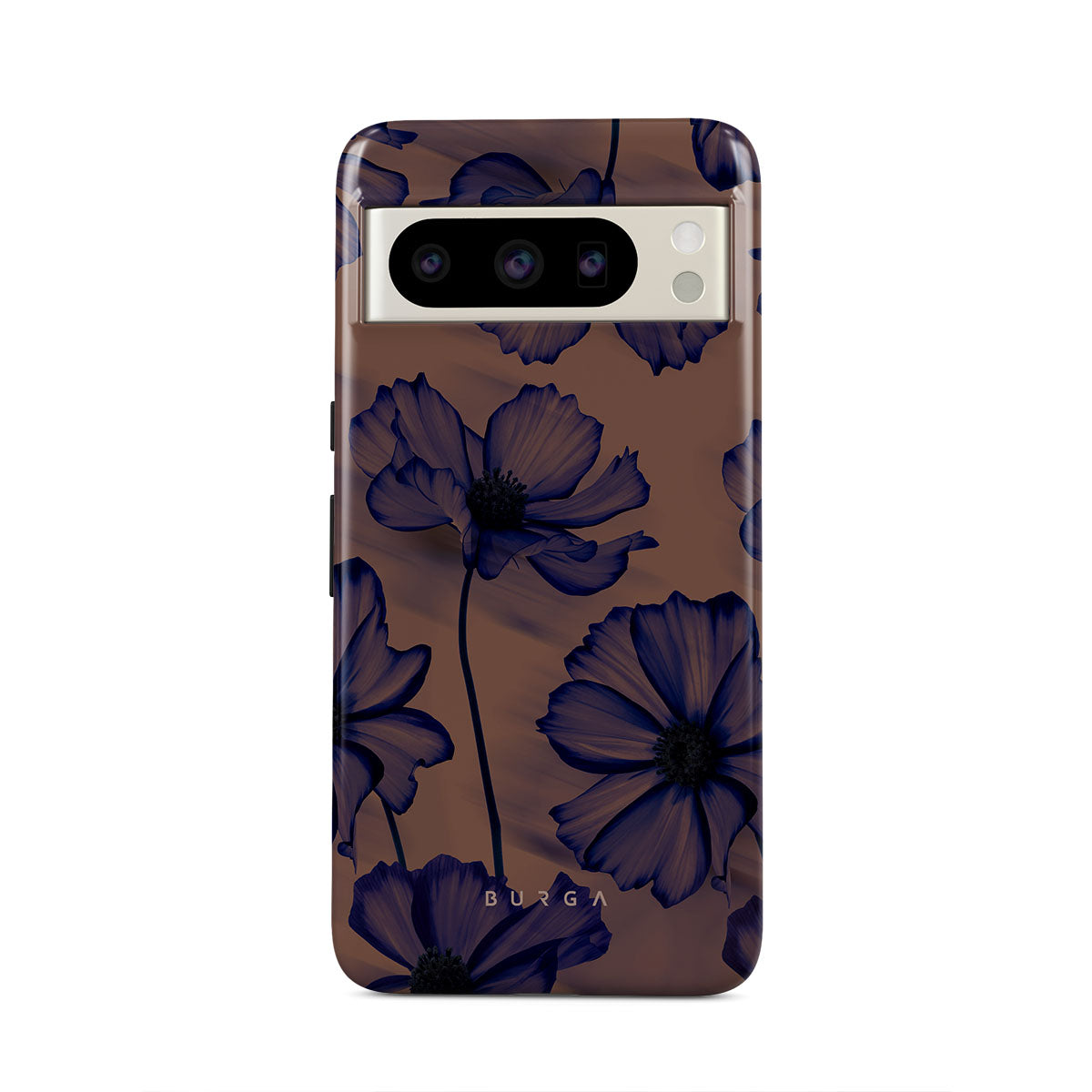 Discover our Velvet Night design. On a soft nude backdrop, blue poppies dance in the untamed rhythm of the wind. A blend of night's peace and daring energy, this Google Pixel 8 Pro phone case is perfect for those who dream big and seek adventure.