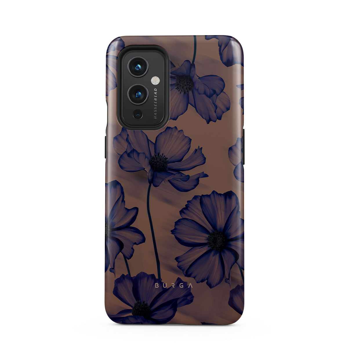 Discover our Velvet Night design. On a soft nude backdrop, blue poppies dance in the untamed rhythm of the wind. A blend of night's peace and daring energy, this OnePlus 9 phone case is perfect for those who dream big and seek adventure.