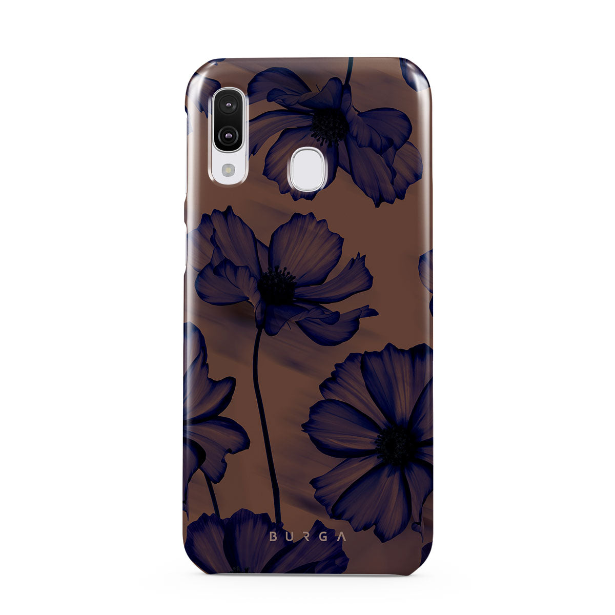 Discover our Velvet Night design. On a soft nude backdrop, blue poppies dance in the untamed rhythm of the wind. A blend of night's peace and daring energy, this Samsung Galaxy A40 phone case is perfect for those who dream big and seek adventure.
