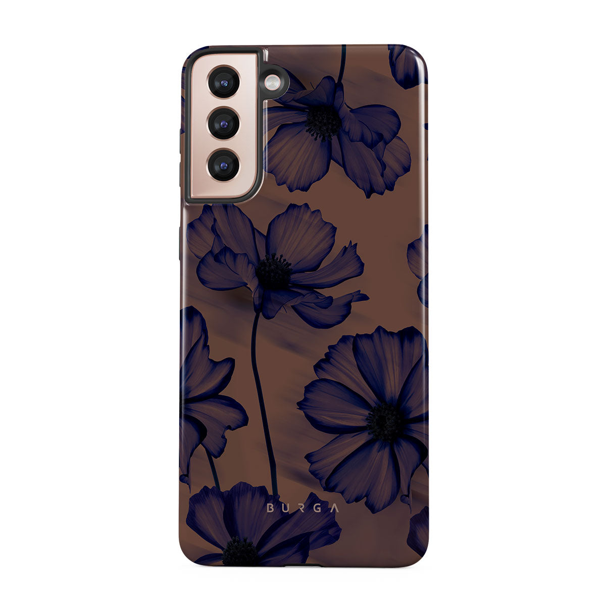 Discover our Velvet Night design. On a soft nude backdrop, blue poppies dance in the untamed rhythm of the wind. A blend of night's peace and daring energy, this Samsung Galaxy S21 Plus phone case is perfect for those who dream big and seek adventure.