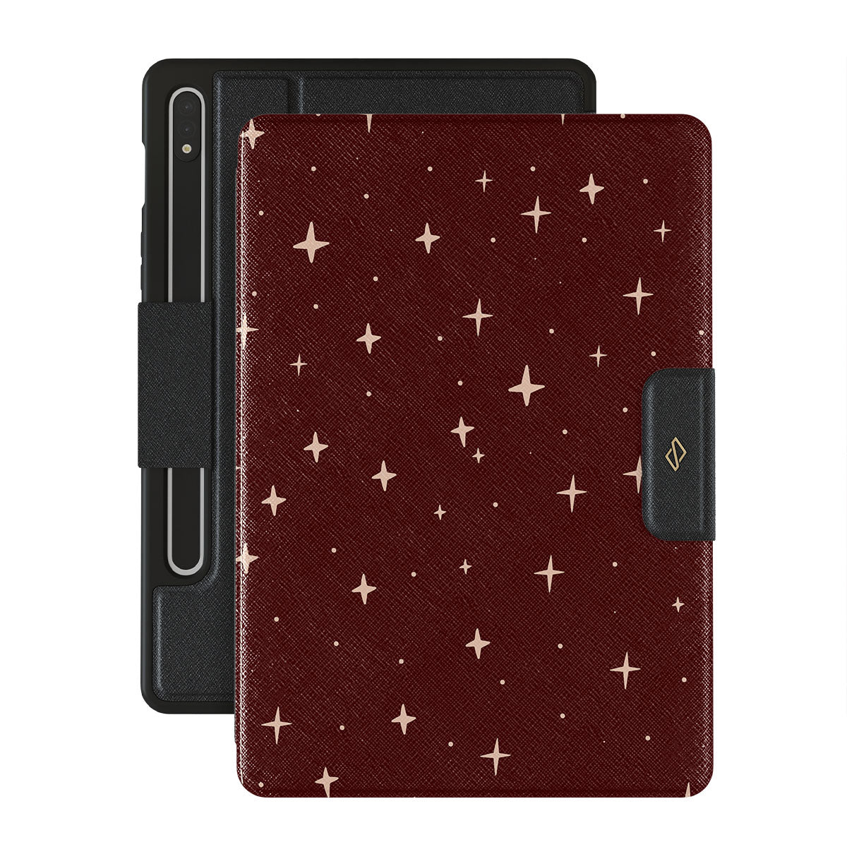 Drenched in radiant red and sprinkled with the sparkle of golden stars. It's like the holiday spirit transformed into art. Meet Very Merry Samsung Galaxy Tab S9+ FE folio case - a timeless design perfect for everything from festive parties to daily errands.