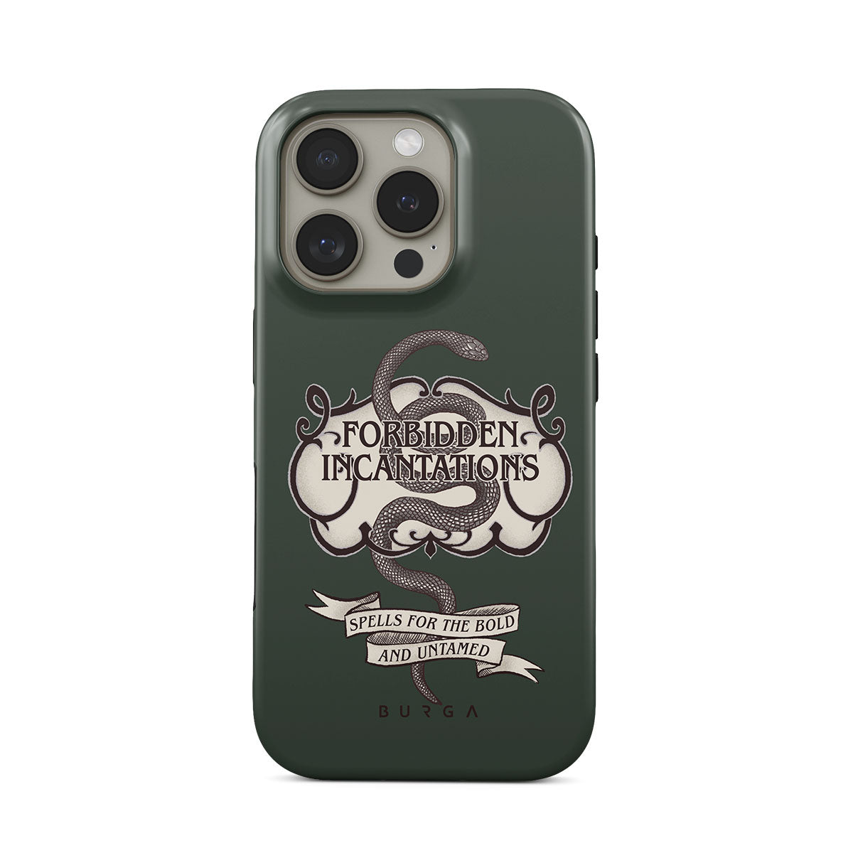 This design features: snake, gothic text