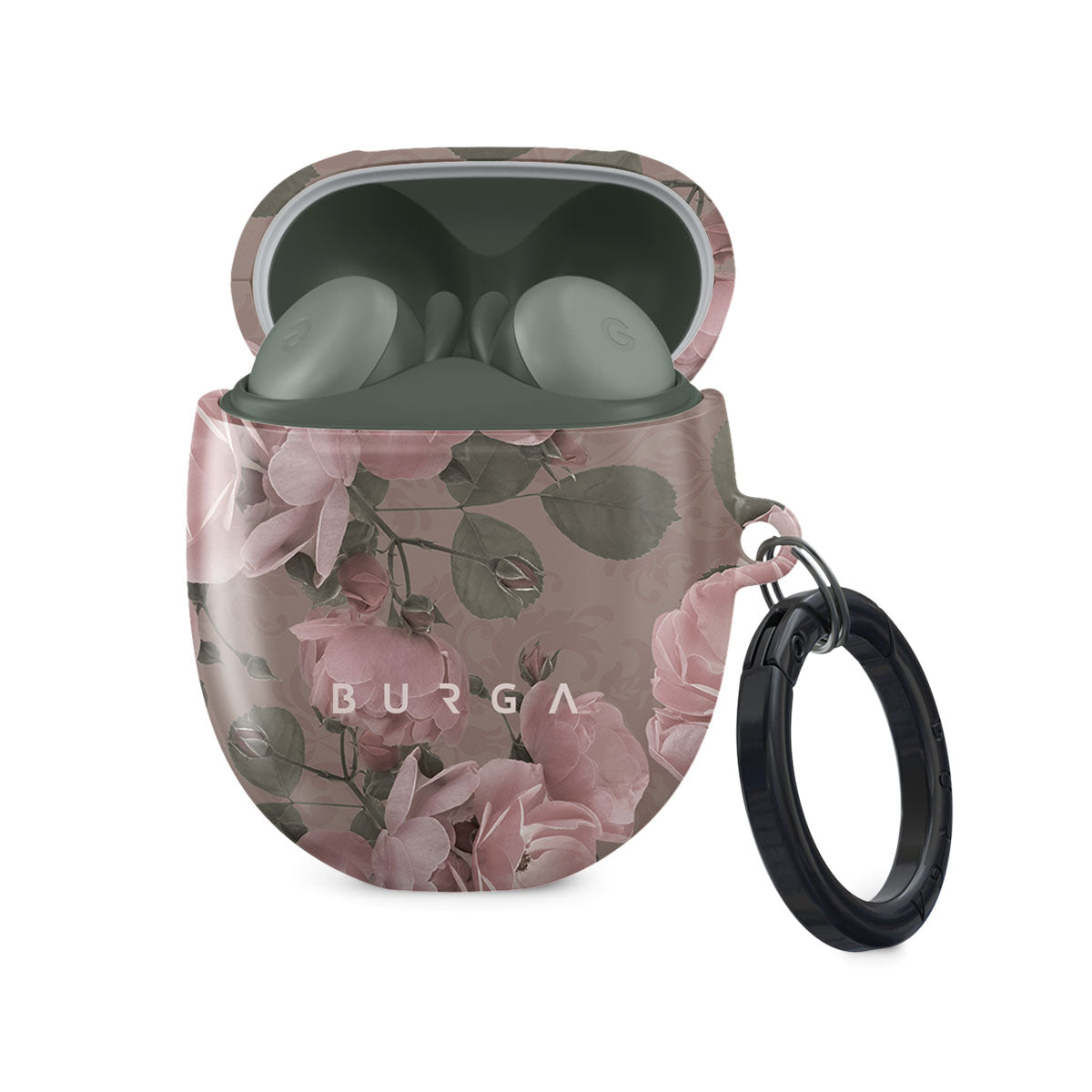 Blush, blooming roses transport you to an era of silent film stars and secret gardens. Our sophisticated Vintage Glamour Google Pixel Buds A case cover design is perfect for the romantic at heart. It's for those who speak in glances and sighs and find comfort in the nostalgic whispers of floral romance.
