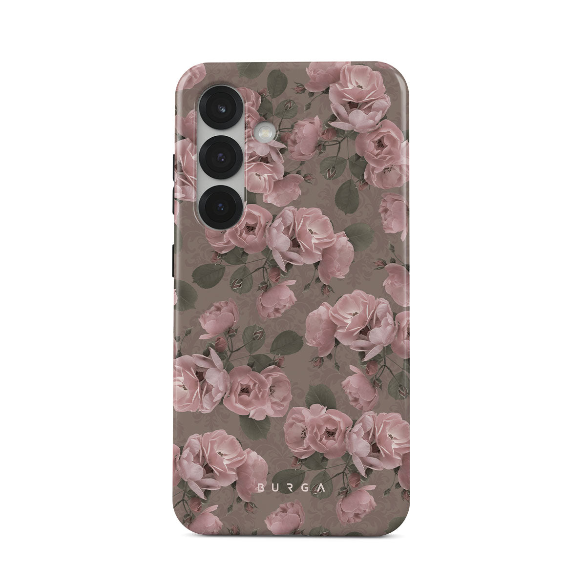 Blush, blooming roses transport you to an era of silent film stars and secret gardens. Our sophisticated Vintage Glamour Samsung Galaxy S25 phone case design is perfect for the romantic at heart. It's for those who speak in glances and sighs and find comfort in the nostalgic whispers of floral romance.