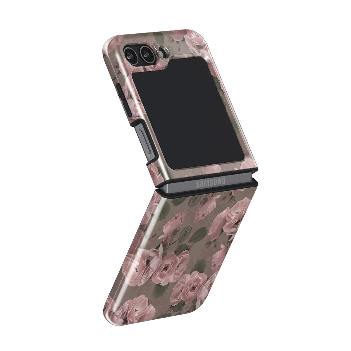 Blush, blooming roses transport you to an era of silent film stars and secret gardens. Our sophisticated Vintage Glamour Samsung Galaxy Z Flip 5 phone case design is perfect for the romantic at heart. It's for those who speak in glances and sighs and find comfort in the nostalgic whispers of floral romance.