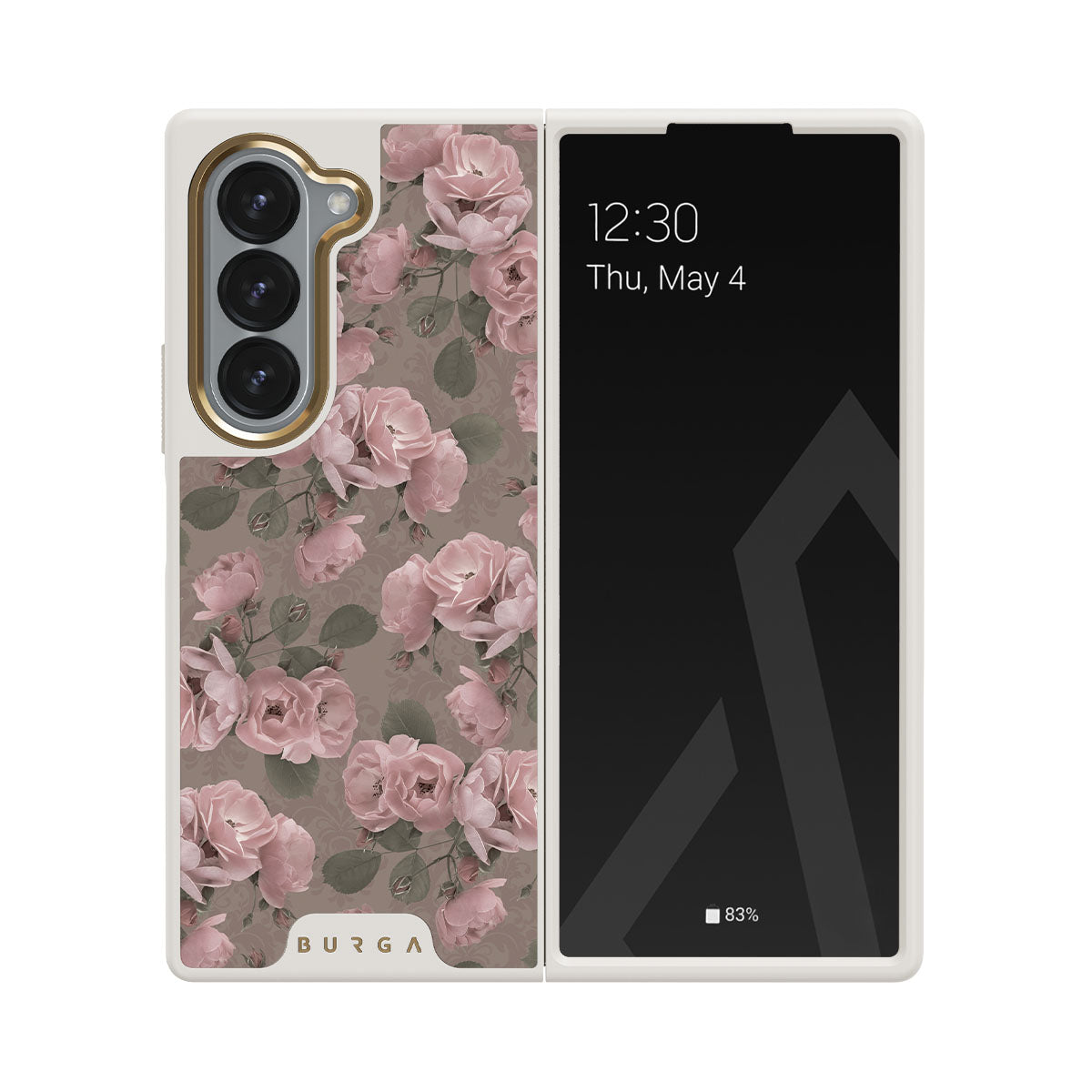 Blush, blooming roses transport you to an era of silent film stars and secret gardens. Our sophisticated Vintage Glamour Samsung Galaxy Z Fold 6 phone case design is perfect for the romantic at heart. It's for those who speak in glances and sighs and find comfort in the nostalgic whispers of floral romance.