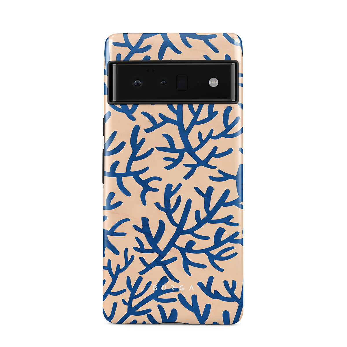 Everyone needs some vitamins and relaxing time by the sea, right? Yes! And our word-play-inspired Vitamin Sea Google Pixel 6 Pro phone case design is the perfect companion you must bring to the beach. Keep your phone protected in a case featuring a geometrical tree-like blue pattern. The case will surely catch an eye, and the selfies will look even more popping!