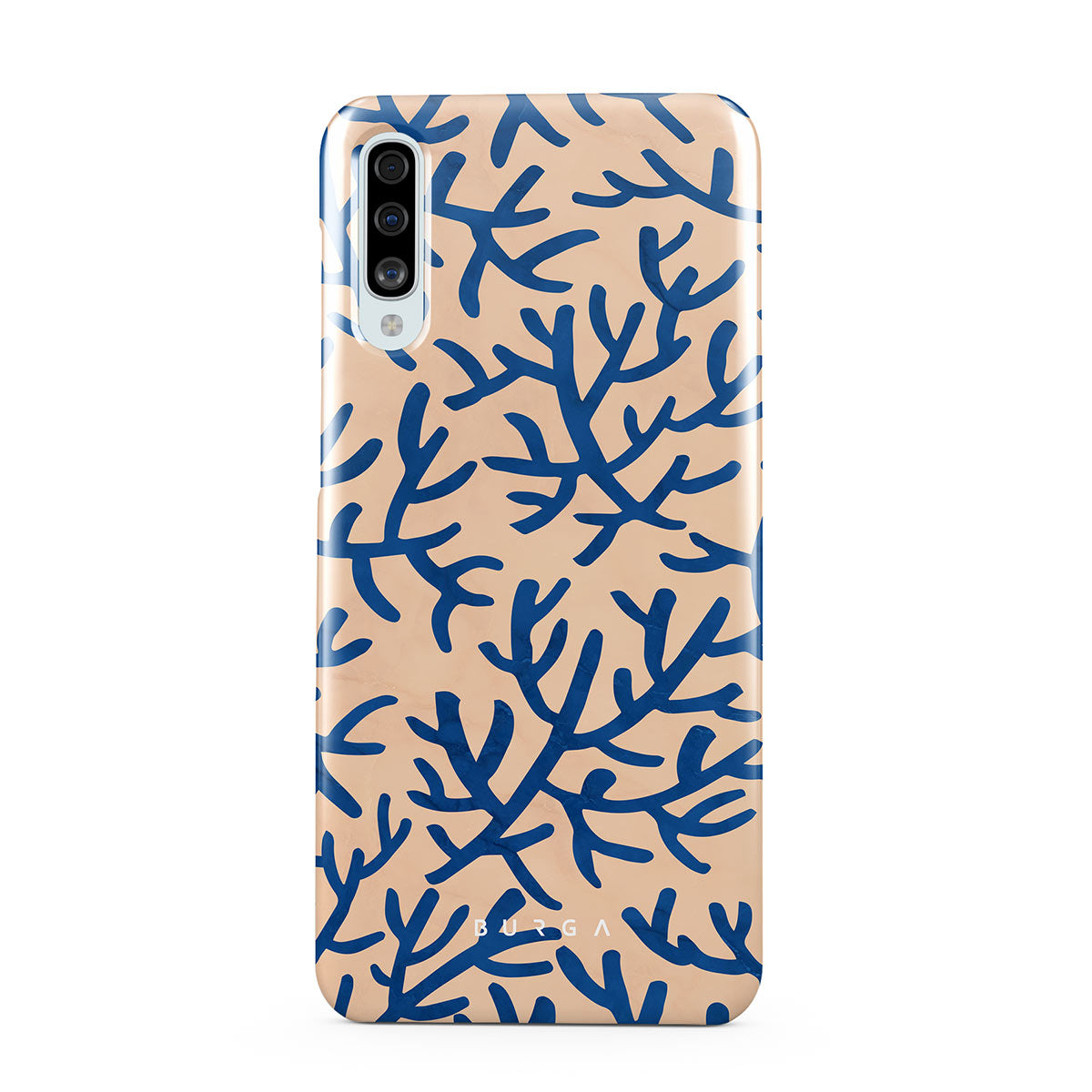 Everyone needs some vitamins and relaxing time by the sea, right? Yes! And our word-play-inspired Vitamin Sea Samsung Galaxy A50 phone case design is the perfect companion you must bring to the beach. Keep your phone protected in a case featuring a geometrical tree-like blue pattern. The case will surely catch an eye, and the selfies will look even more popping!