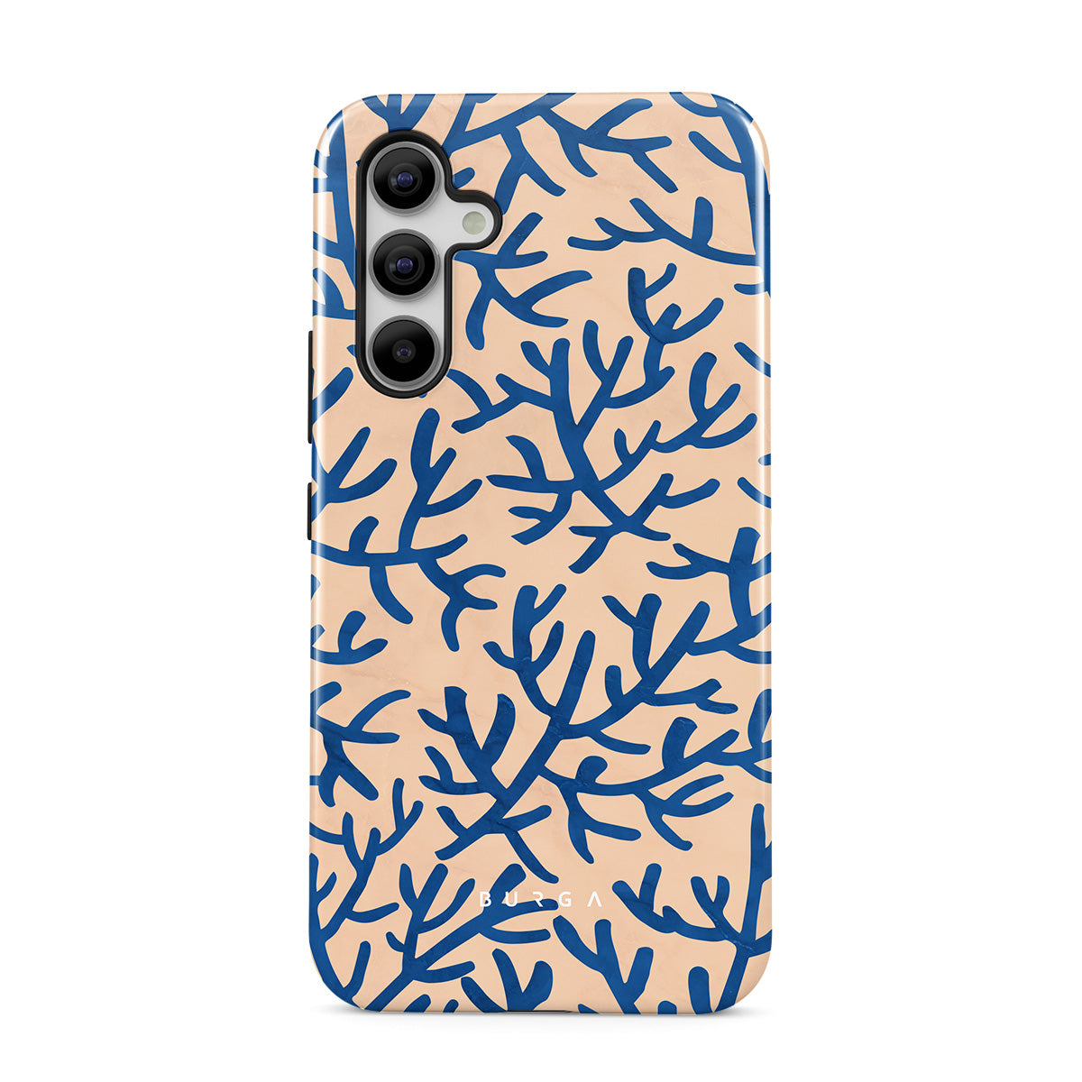 Everyone needs some vitamins and relaxing time by the sea, right? Yes! And our word-play-inspired Vitamin Sea Samsung Galaxy A54 phone case design is the perfect companion you must bring to the beach. Keep your phone protected in a case featuring a geometrical tree-like blue pattern. The case will surely catch an eye, and the selfies will look even more popping!