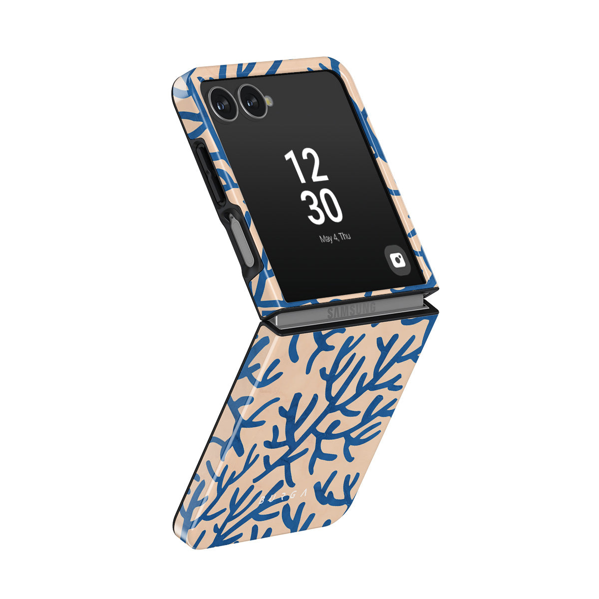 Everyone needs some vitamins and relaxing time by the sea, right? Yes! And our word-play-inspired Vitamin Sea Samsung Galaxy Z Flip 7 phone case design is the perfect companion you must bring to the beach. Keep your phone protected in a case featuring a geometrical tree-like blue pattern. The case will surely catch an eye, and the selfies will look even more popping!