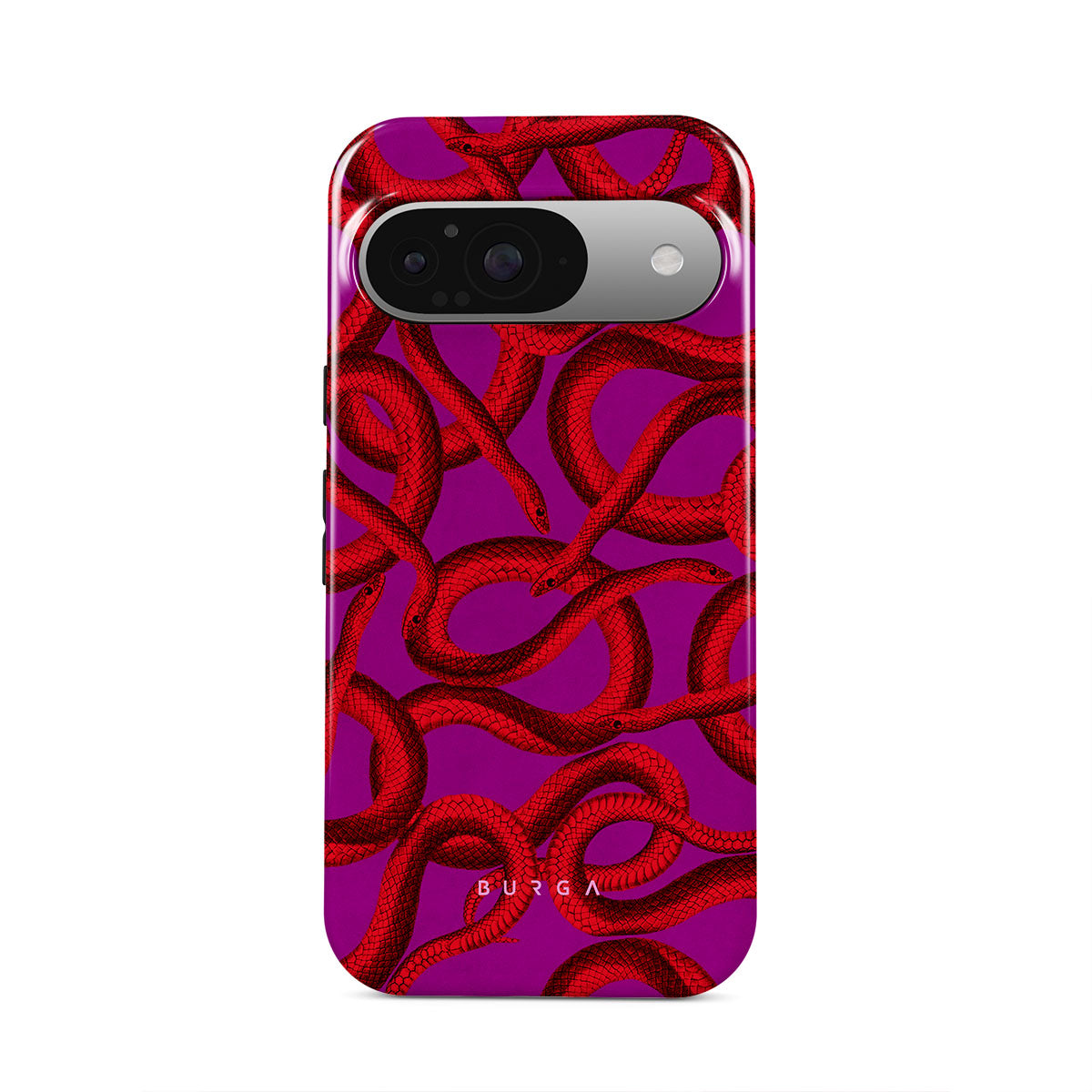 Watch Out Google Pixel 9 phone case design offers a fierce feel with a bright magenta colored background covered in red snakes pattern. Make a statement while protecting your phone, as this case is guaranteed to catch everyone's eye.