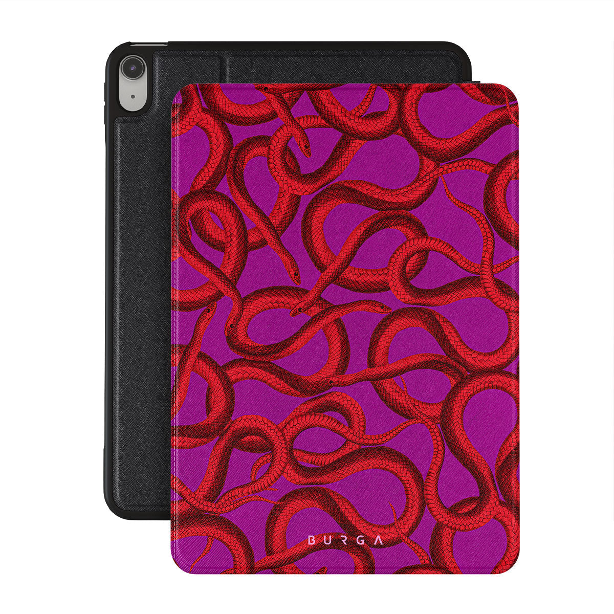 Watch Out iPad 10.9 (A16/10th Gen) folio case design offers a fierce feel with a bright magenta colored background covered in red snakes pattern. Make a statement while protecting your iPad, as this case is guaranteed to catch everyone's eye.