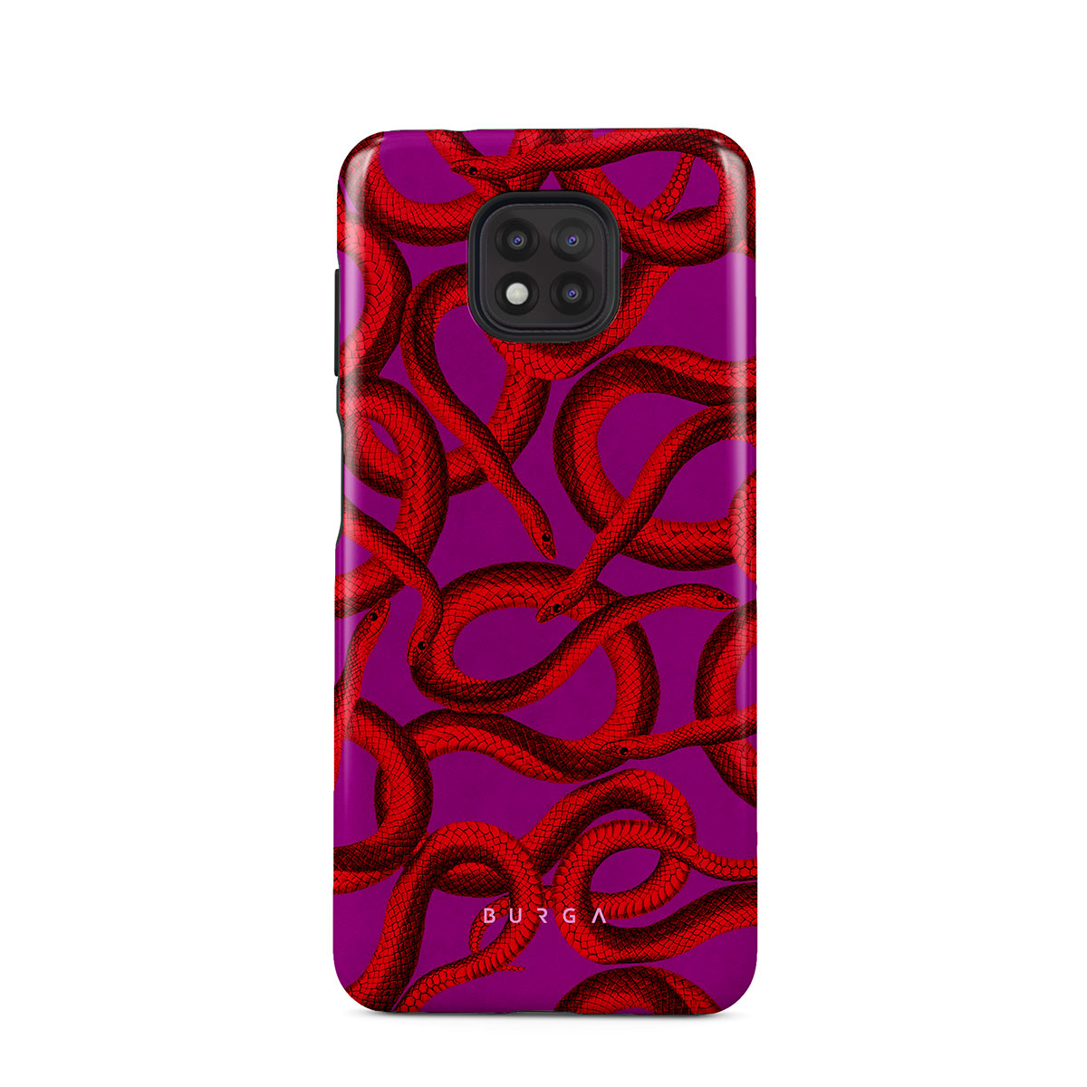Watch Out Motorola Moto G Power 2021 phone case design offers a fierce feel with a bright magenta colored background covered in red snakes pattern. Make a statement while protecting your phone, as this case is guaranteed to catch everyone's eye.