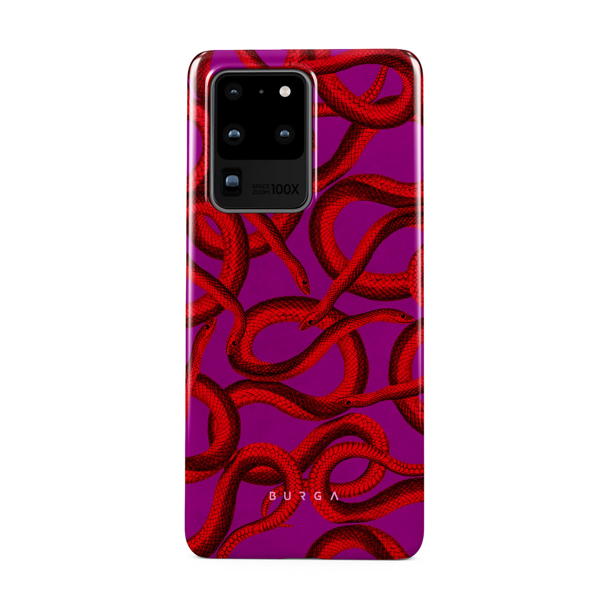 Watch Out Samsung Galaxy S20 Ultra 4G / 5G phone case design offers a fierce feel with a bright magenta colored background covered in red snakes pattern. Make a statement while protecting your phone, as this case is guaranteed to catch everyone's eye.