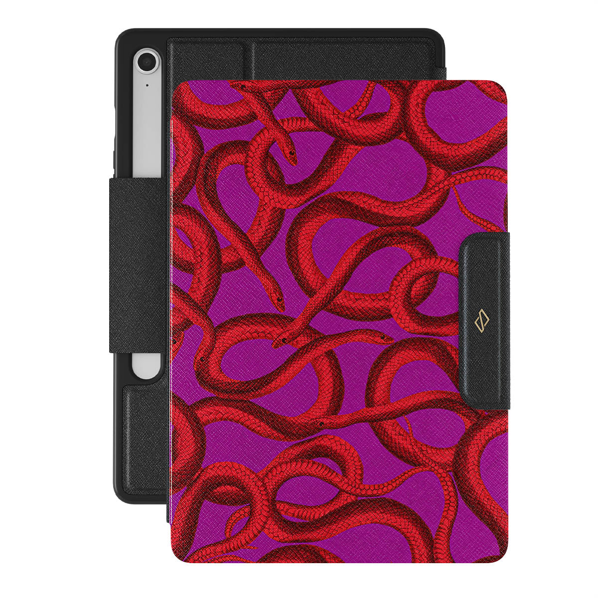 Watch Out Samsung Galaxy Tab S10 FE folio case design offers a fierce feel with a bright magenta colored background covered in red snakes pattern. Make a statement while protecting your Galaxy Tab, as this case is guaranteed to catch everyone's eye.