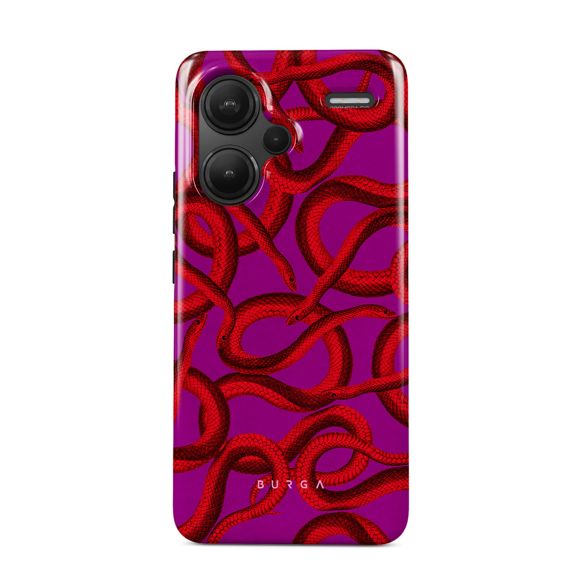 Watch Out Xiaomi Redmi Note 13 Pro+ 5G phone case design offers a fierce feel with a bright magenta colored background covered in red snakes pattern. Make a statement while protecting your phone, as this case is guaranteed to catch everyone's eye.