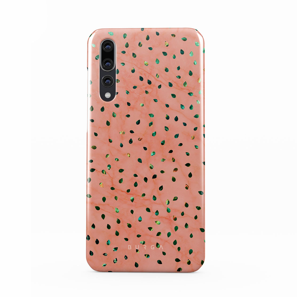 The Watermelon Shake Huawei P20 phone case offers a playful take on design merging. The watermelon seed-like specks showcase striking tropical design fragments that add a splash of color to the fresh and breezy coral pink marble. This way, the funny protective phone cover becomes a perfect statement piece for your summer outfits.