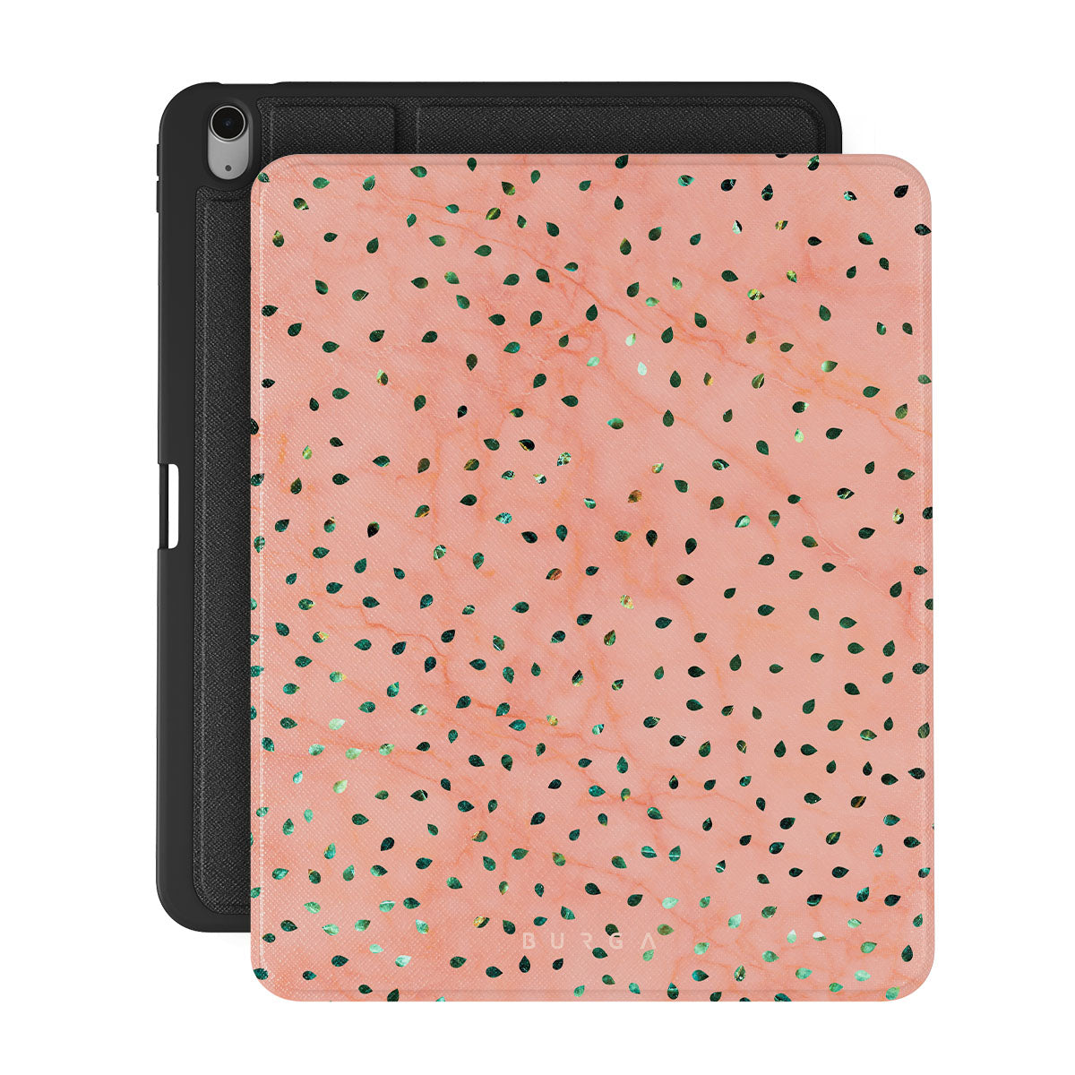The Watermelon Shake iPad Air 13 (7th/6th Gen) folio case offers a playful take on design merging. The watermelon seed-like specks showcase striking tropical design fragments that add a splash of color to the fresh and breezy coral pink marble. This way, the funny protective iPad cover becomes a perfect statement piece for your summer outfits.