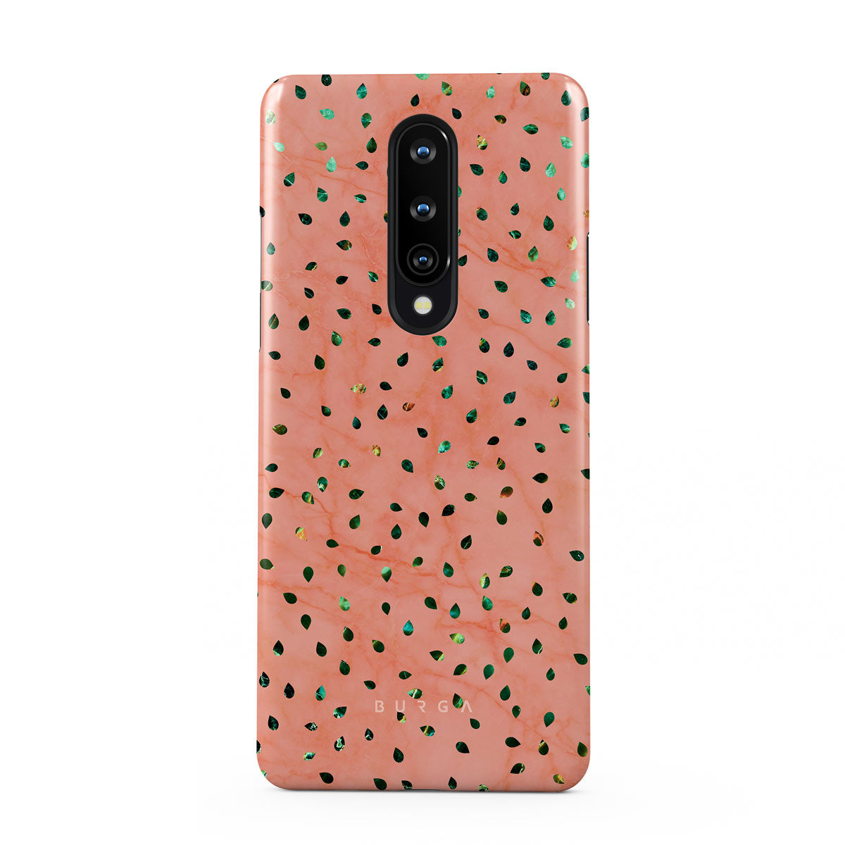 The Watermelon Shake OnePlus 8 phone case offers a playful take on design merging. The watermelon seed-like specks showcase striking tropical design fragments that add a splash of color to the fresh and breezy coral pink marble. This way, the funny protective phone cover becomes a perfect statement piece for your summer outfits.